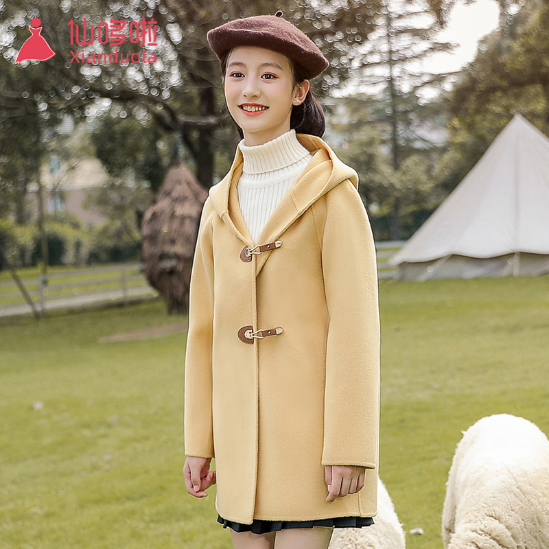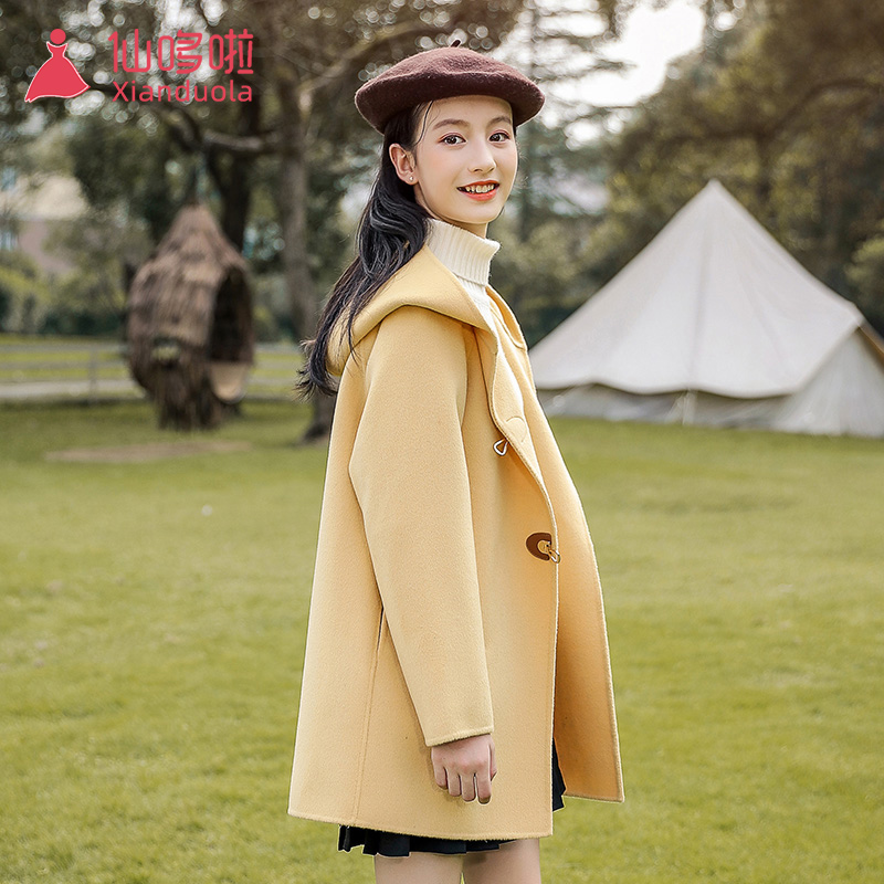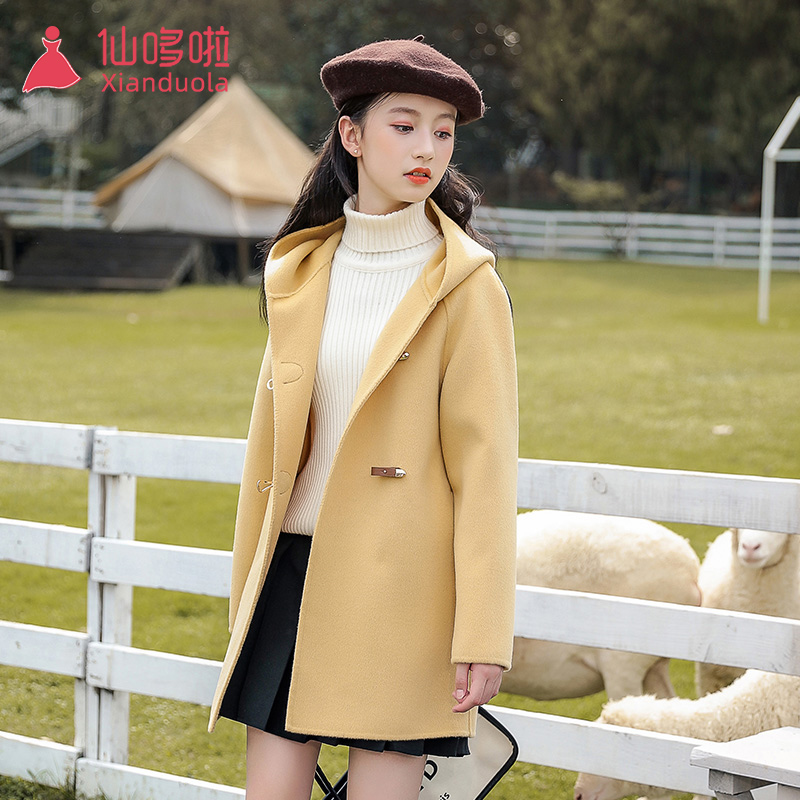 Big girl double-sided cashmere coat yellow medium-length version spring and autumn girl woolen woolen children woolen coat