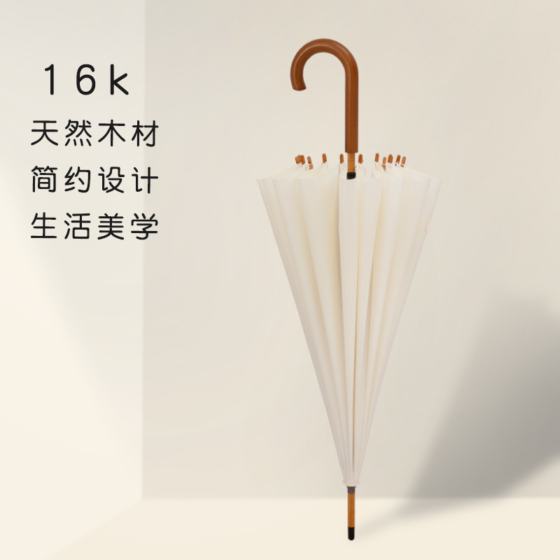 16-bone brown long handle umbrella (wooden stick) 16-bone white long handle umbrella (wooden stick) 16-bone black long handle umbrella (wooden stick)