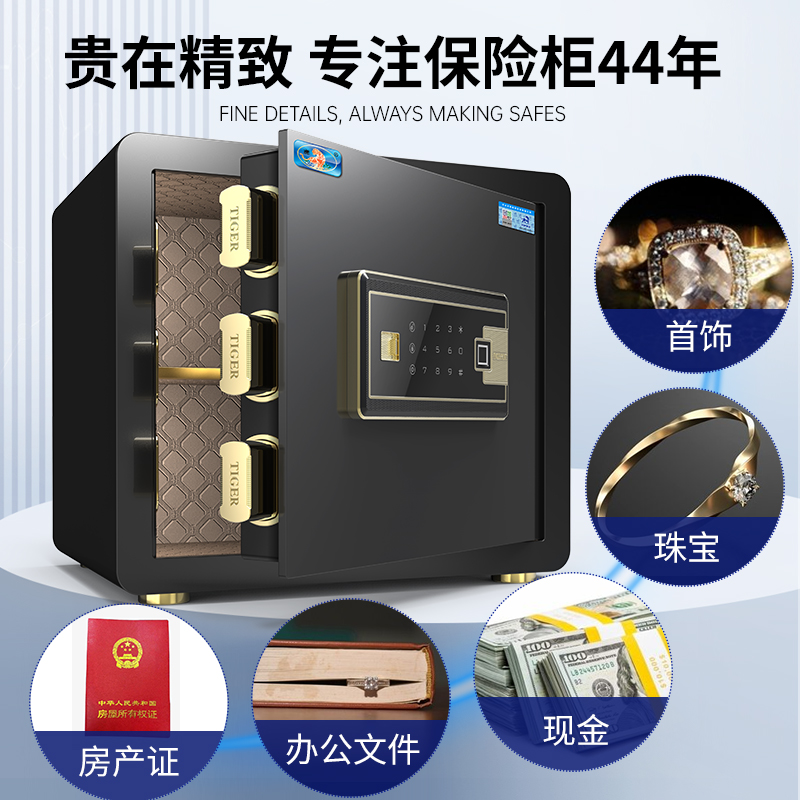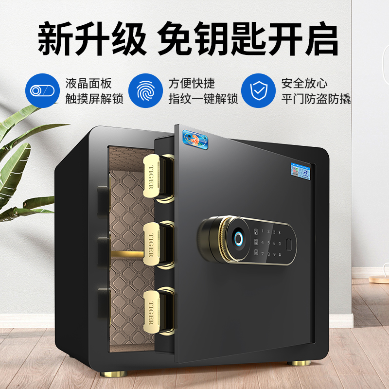 Tiger Card Small Safe Home Safe Home Safe First Accessories Box Full Steel Theft Protection 25cm35 Mini Smart Fingerprint Password 2024 New Entrance Wardrobe Bed Head Cabinet Office Folder ten thousand Safety-deposit Box