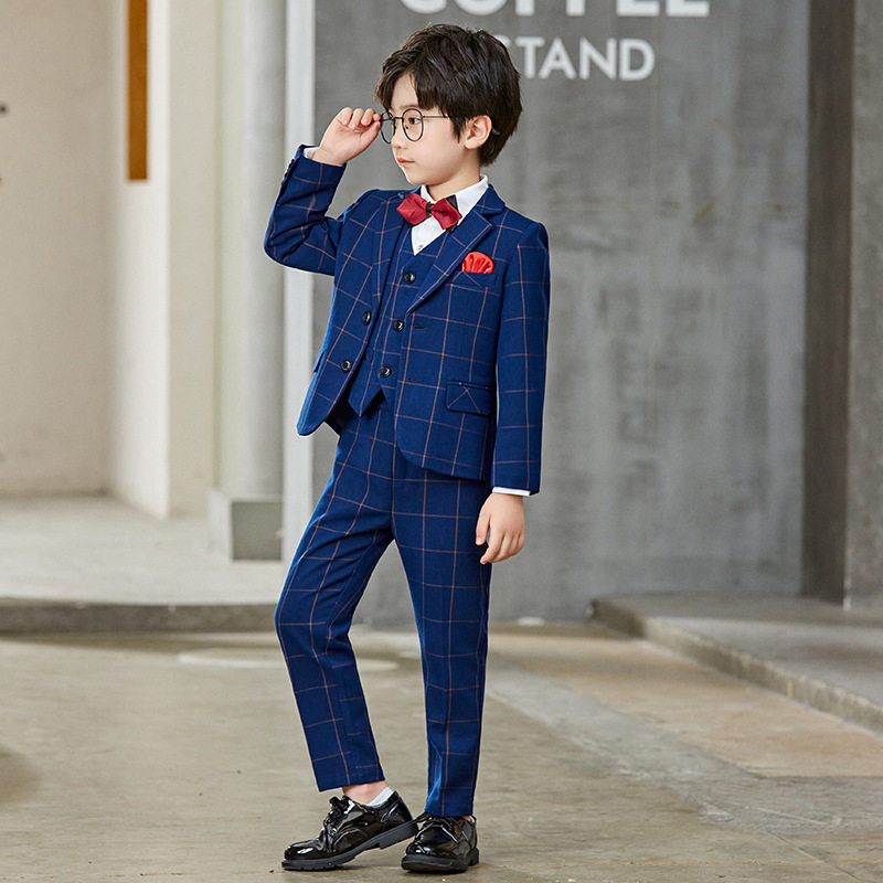 Blue grid coat trousers bow tie blue grid coat pants shirt bow tie blue grid coat pants vest bow tie blue grid coat pants vest shirt bow tie plus velvet blue grid (jacket trousers