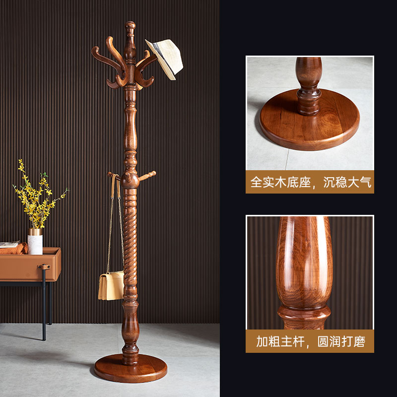 Solid wood hanger frame floor bedroom Chinese cloak rack household living room modern simple single-rod vertical clothing shelf