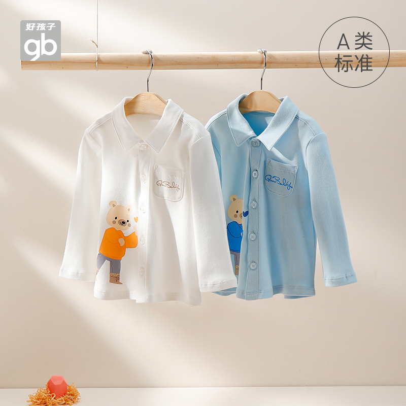 Goodbaby good boy children clothes autumn children blouses open flap pockets long sleeves pure cotton flap male and female shirt