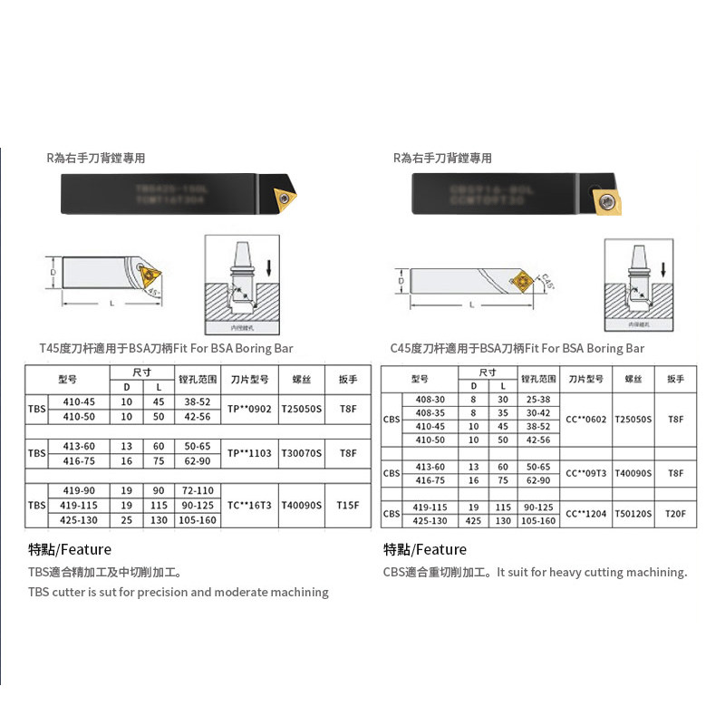 Coarse boring knife lever assorted through hole with BSA BSB shank CBS TBS clothing APMT1604 CCMT TCMT knife grain