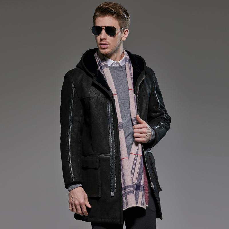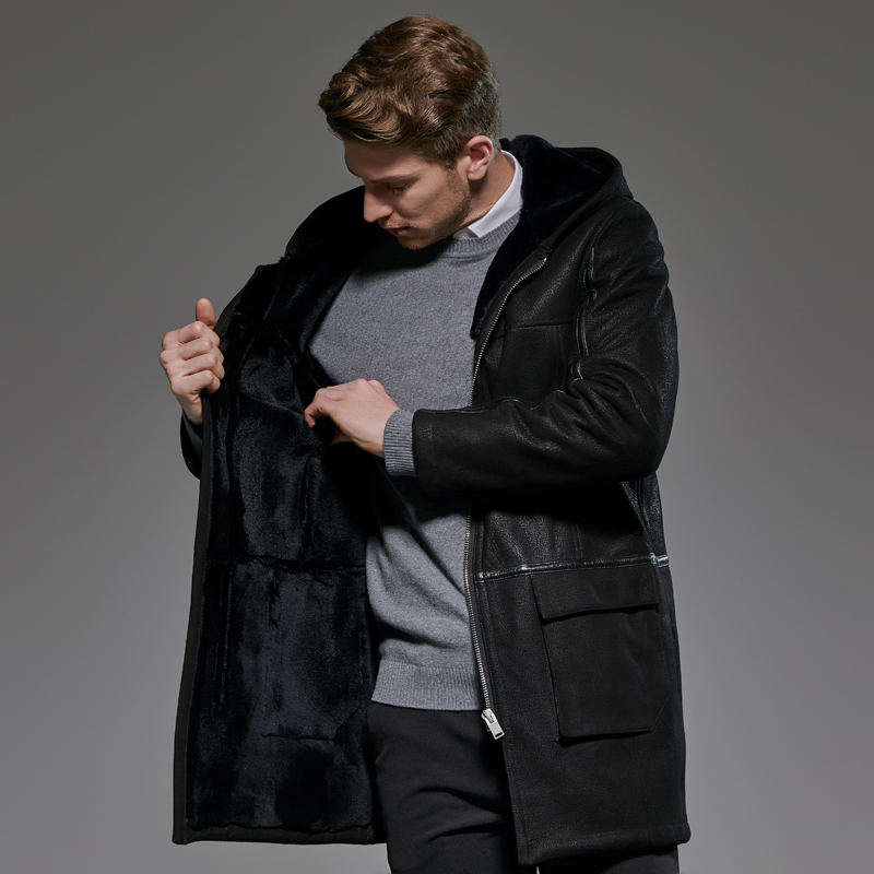 Gfei steps up the fur integrated male mid-length version genuine leather fur coat men's large size leather grass jacket lamb fur coat