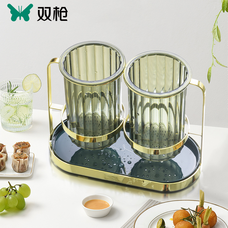 Golden iron frame-ink green double cylinder chopstick cage 3 1 2