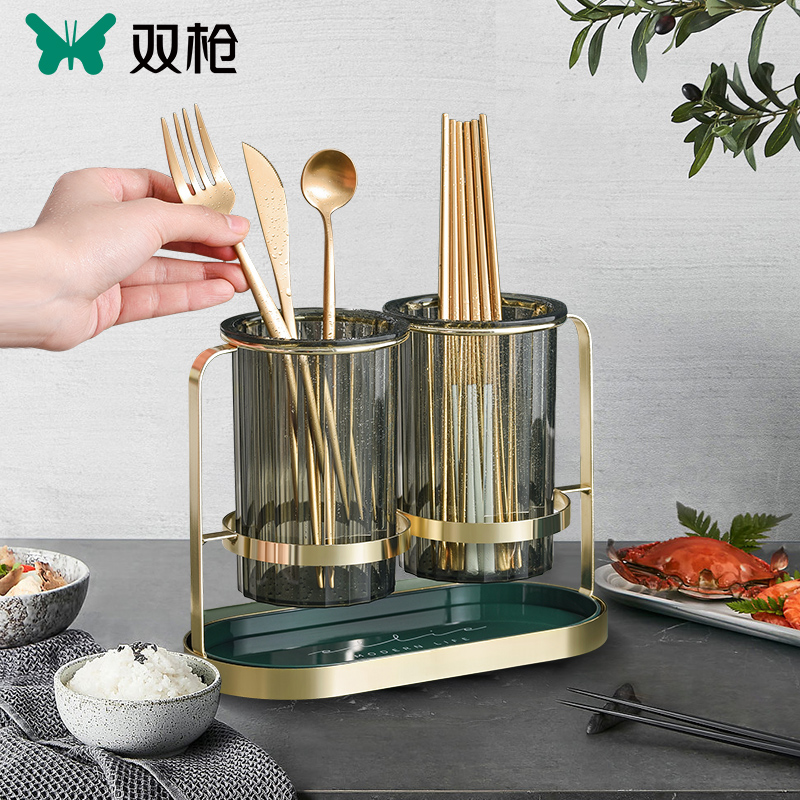 Double-gun chopstick cylinder chopstick containing box shellable Drain Chopstick Cage Home Kitchen Chopsticks Barrel Iron Art Cutlery