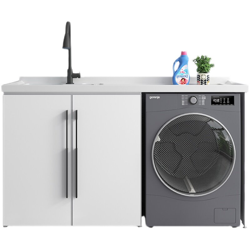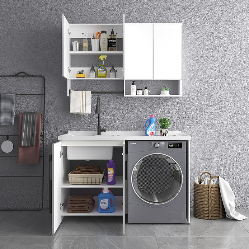 Custom Space Aluminum Laundry Cabinet Washing Machine Cabinet Balcony Combined Laundry Pool Table Slot Basin Face Mate Integrated Cabinet Cut Corner