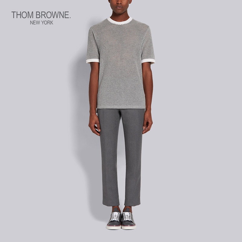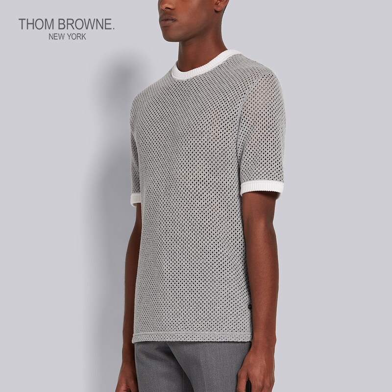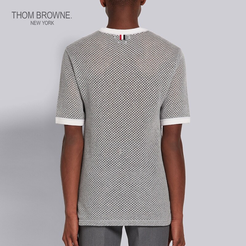 THOM BROWNE man 2022 Summer mesh cashmere light grey short sleeve T-shirt male