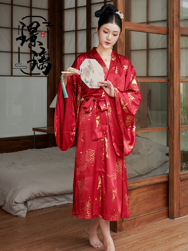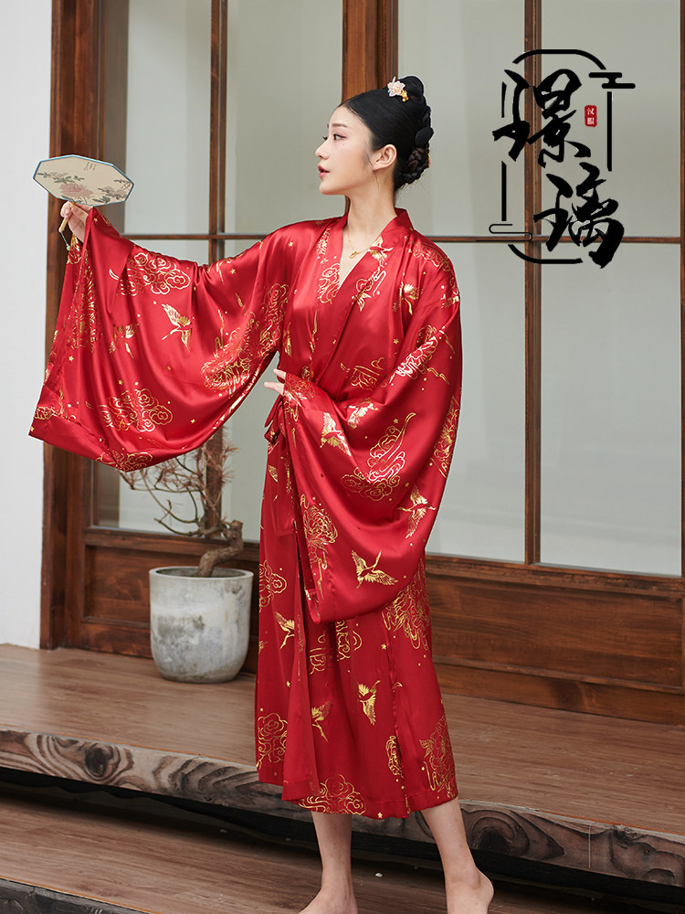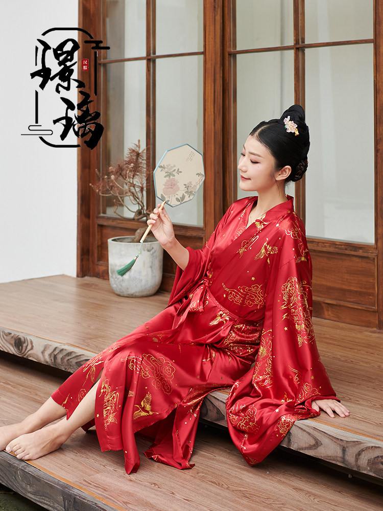 Glazed Original China Wind Sleepwear Ancient Wind Emulation Silk Chinese Wedding Bridal Bridal Gown Sleep Robe Hanfu Woman Loose version