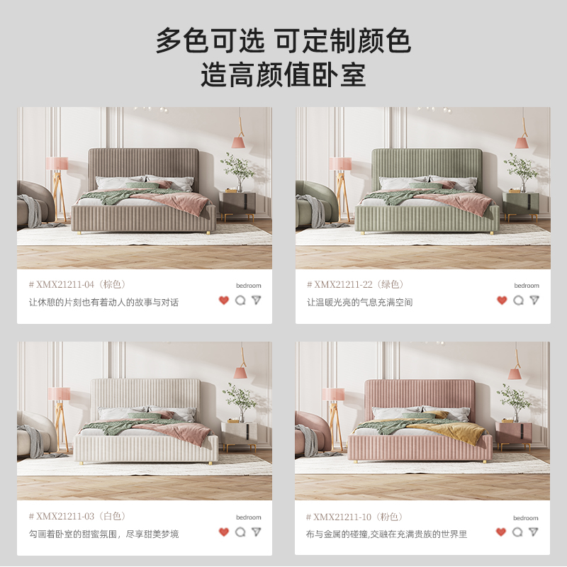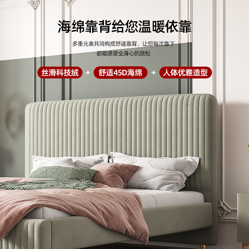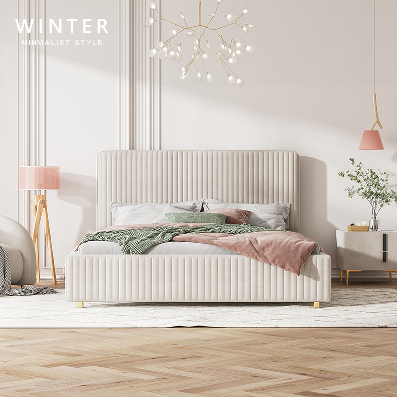 Winter bear net red ins wind girl technology velvet fabric bed Nordic light luxury master bedroom double soft bed 1 8 villa wedding bed