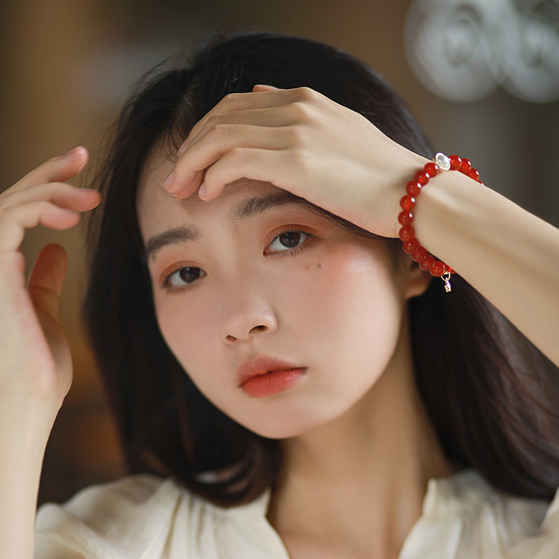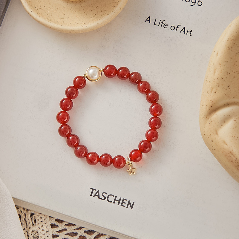 Hand-haired female summer simple ins niche feeling age-reducing temperament beaded DIY red agate bracelet original design creativity - Taobao