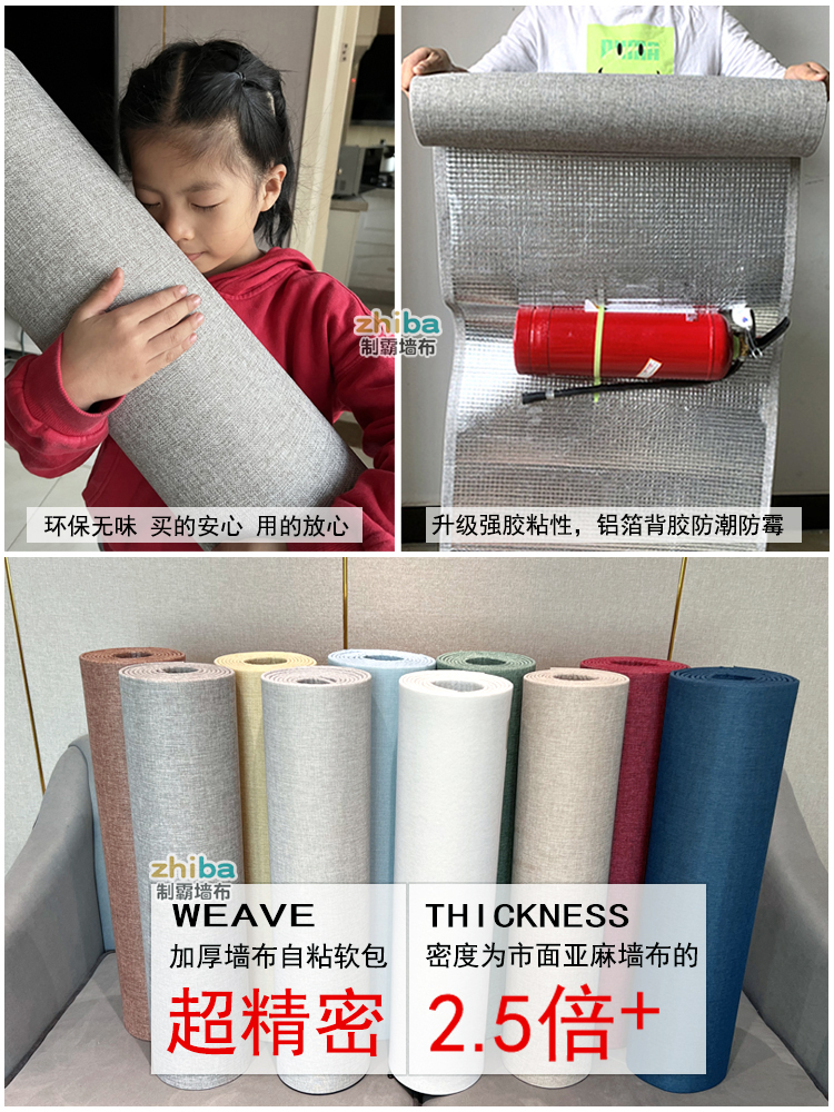 Linen wall cloth self-adhesive waterproof thickened TV background wallpaper bedside soft bag wall panel decoration living room bedroom wall cloth
