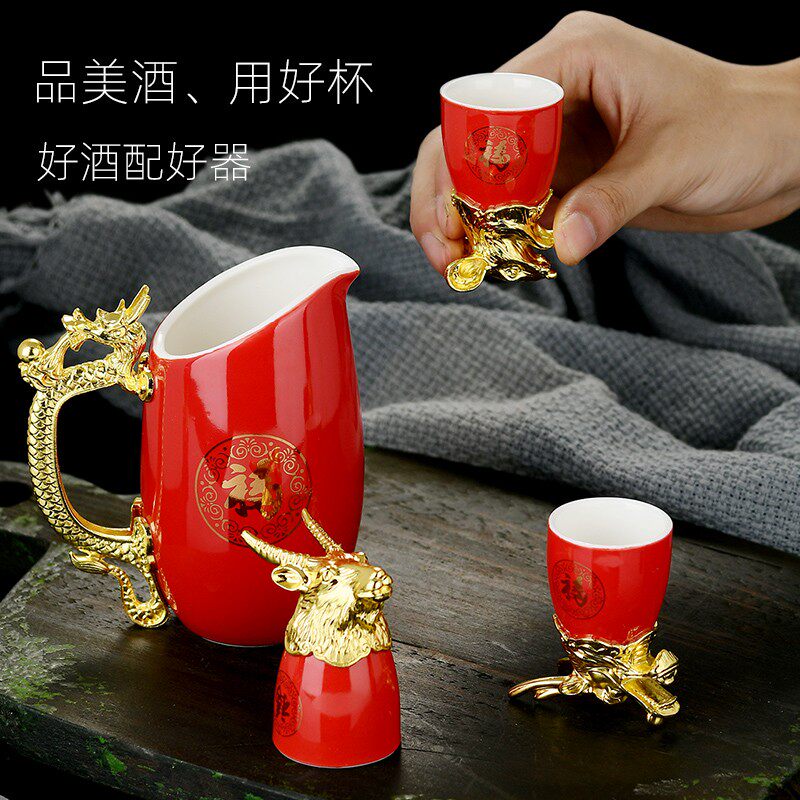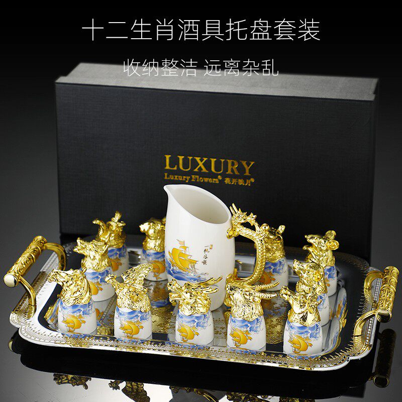 Chinese ceramic 12 zodiac white wine glasses Wine Distributor Creative Spirits Glass Wine Pot home Wine Wine Taverware Gift Box Set