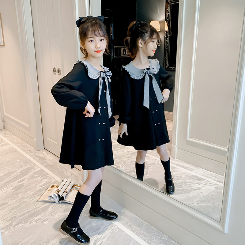 Girls dress autumn 2022 new children's net red western style fashionable plaid collar bowknot long-sleeved princess dress