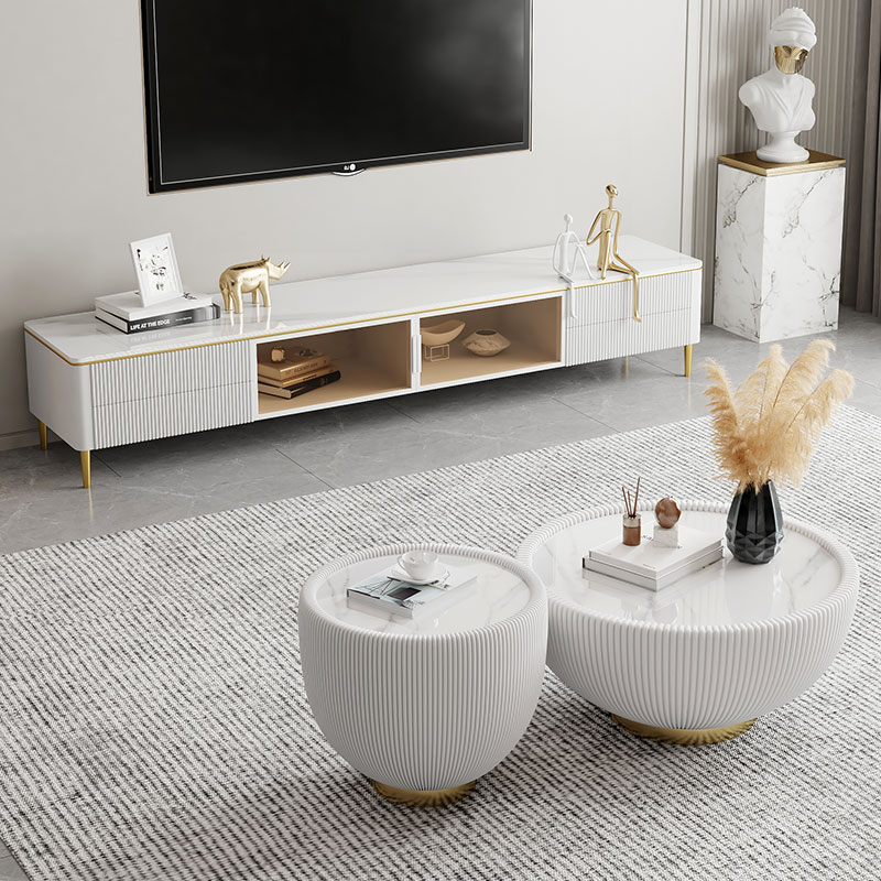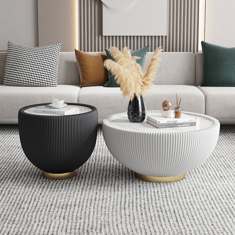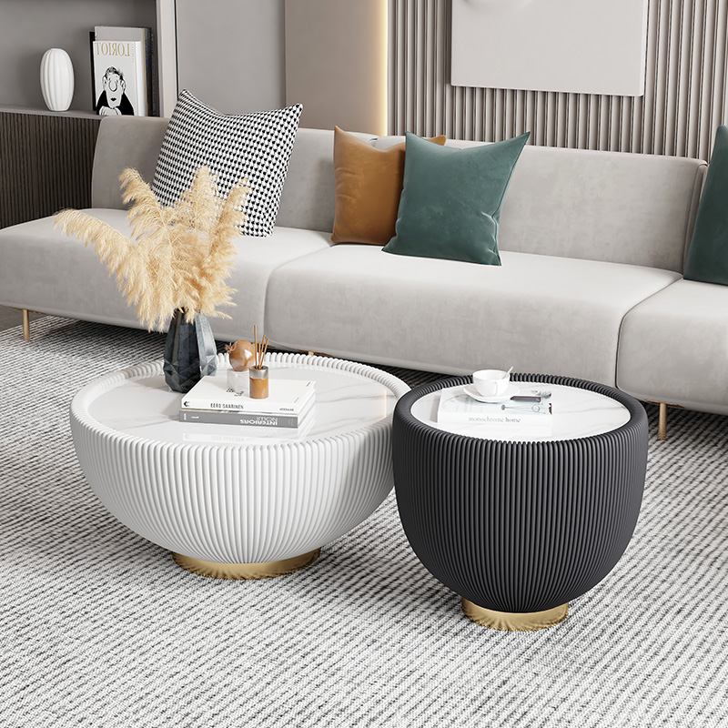 Brief Modern Light Lavish Rockboard Tea Table Small Family Type Round Small Crowd Superior Sense Home Living Room Net Red Extreme Minimalist Creativity