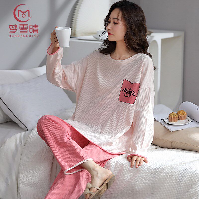 Meng Xueqing home service flagship store women's pajamas spring and autumn long-sleeved loose Korean version can be worn outside cotton home clothes