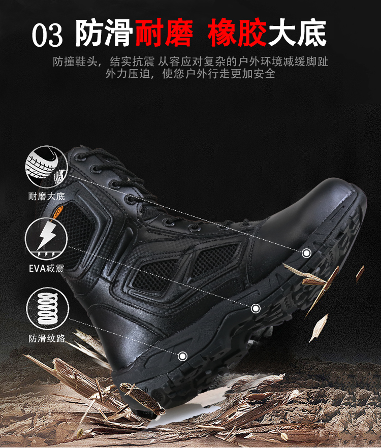 Zipper tie T American high tube combat training boots men's land battle training tactical shoes 511 big tiger battlefield