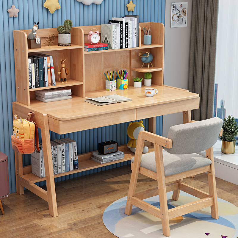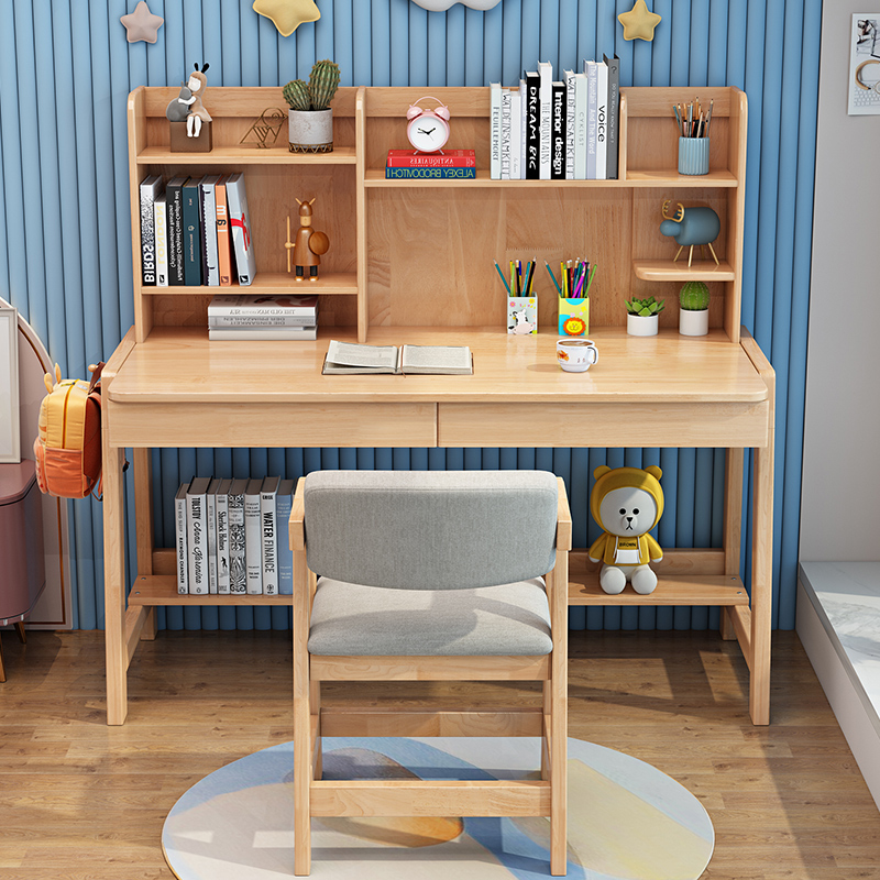 Solid wood learning desk and chair set simple home modern student desk log children's bedroom desk can be raised and lowered