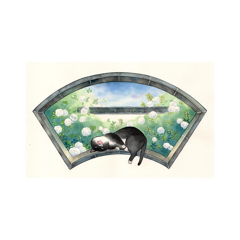 New Generation National Tide Artist Peanut Kernel (Sleeping On The Pane 1) Healing the Cat Painting