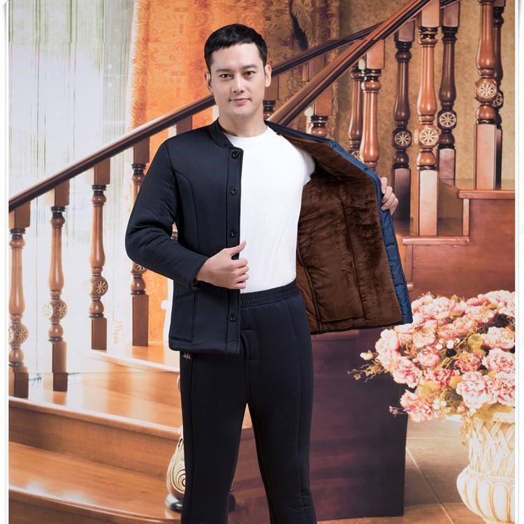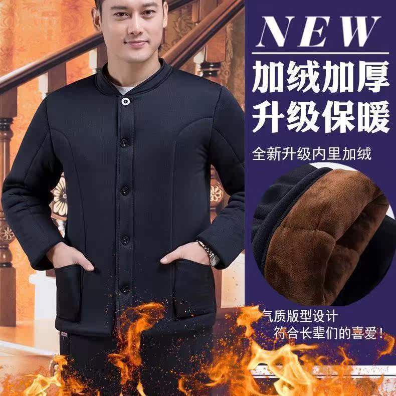 Middle-aged and elderly cotton-padded men's winter thickening and velvet cotton-padded jacket and cotton pants old man's grandfather's hot pants dad wears cotton-padded clothes
