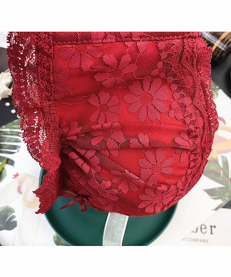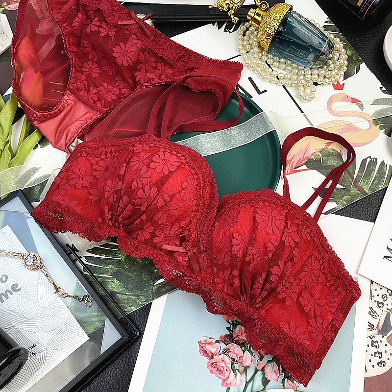 This Life Year Red Lingerie Women Gather Little Bra No Marks Palm Cup No Steel Ring Sexy Lace Little Cute Suit Thick
