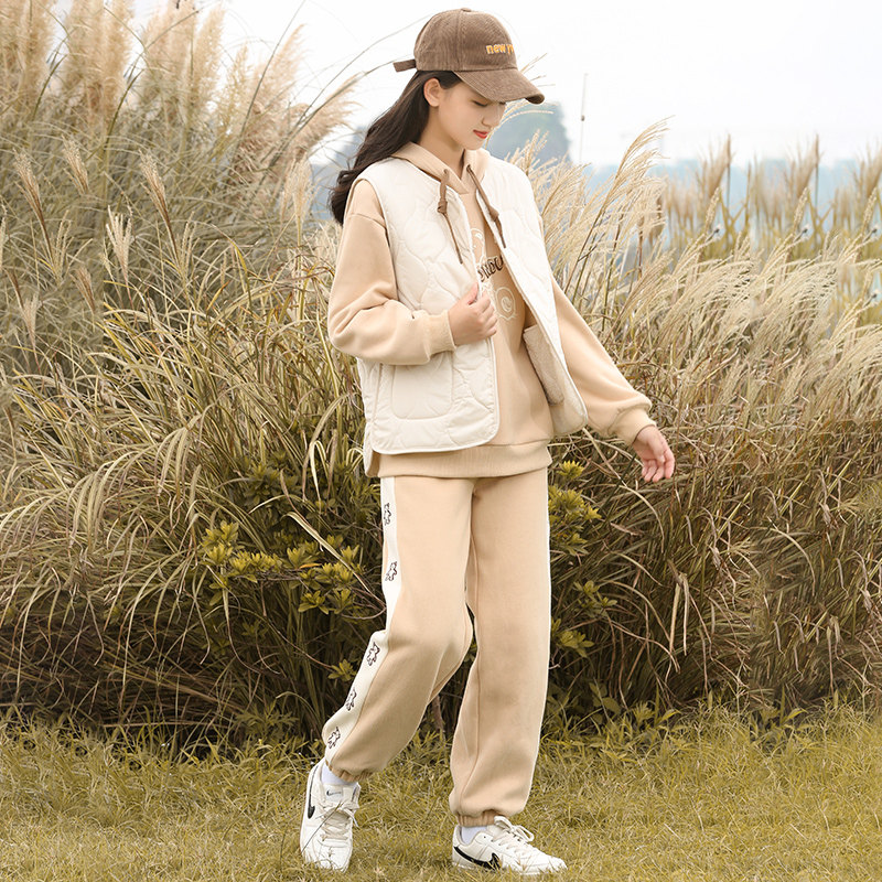 Girls sportswear suits junior high school students winter clothes big boys autumn and winter high school girls fashion girls plus velvet thickening