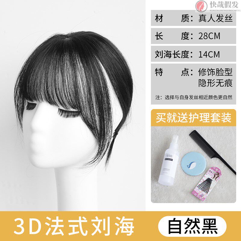 French fake bangs wig net red real hair 3D air bangs natural forehead wig piece round face fake head curtain shape