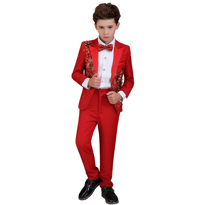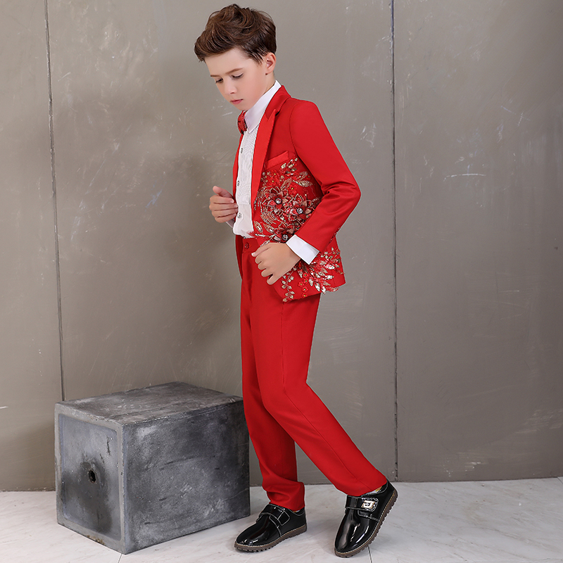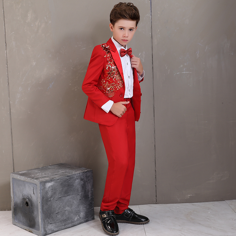 Children's suit suit boys small dress British style handsome red Chinese New Year show catwalk costume host