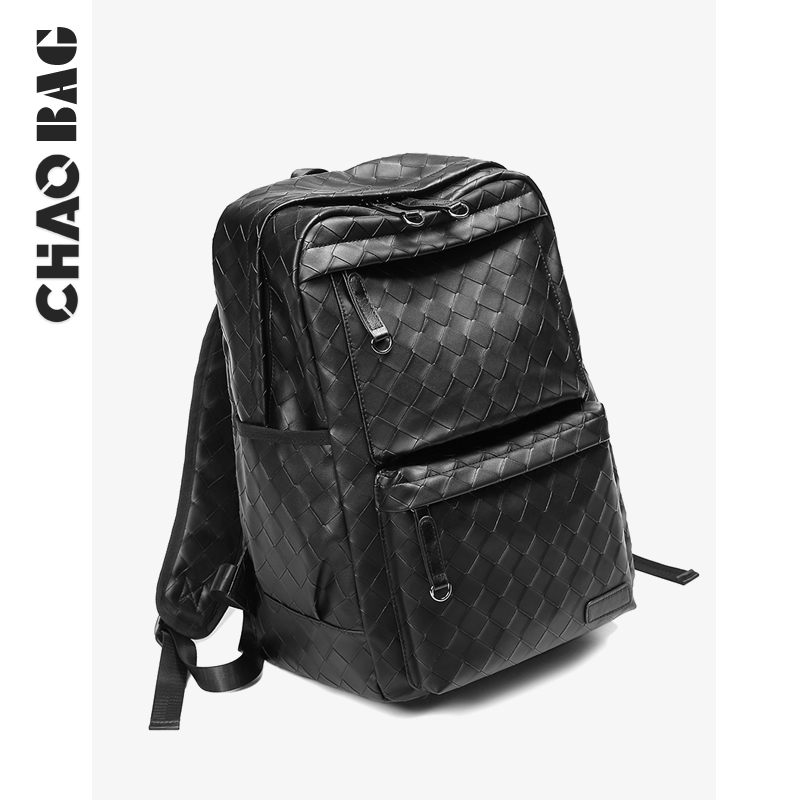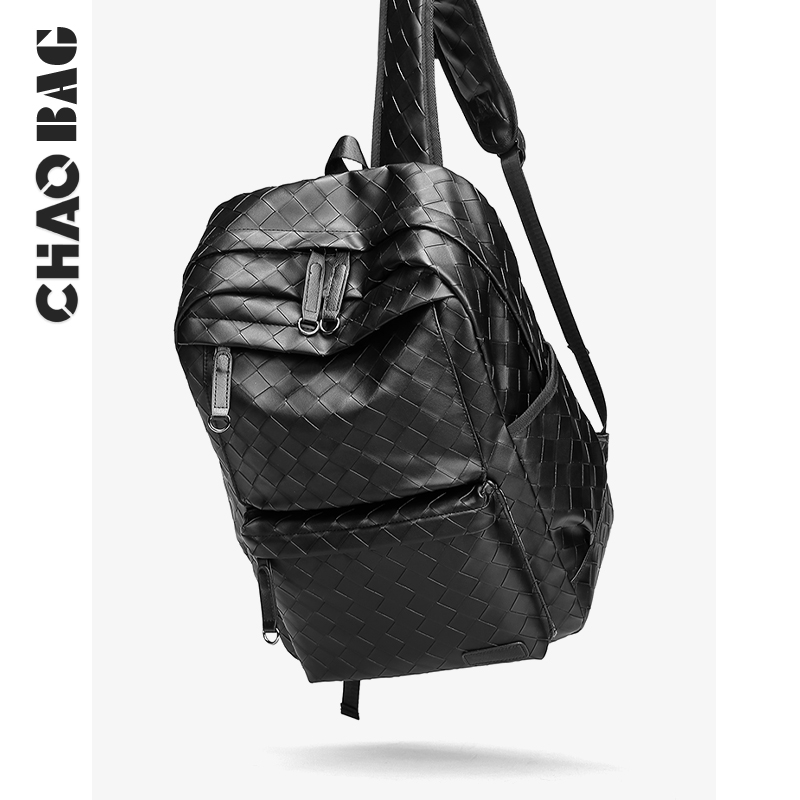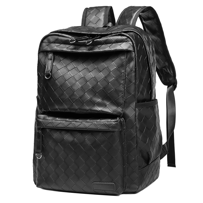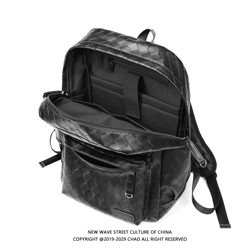 Men's Korean version of large-capacity leisure travel backpack fashion trend woven leather backpack college student bag trend