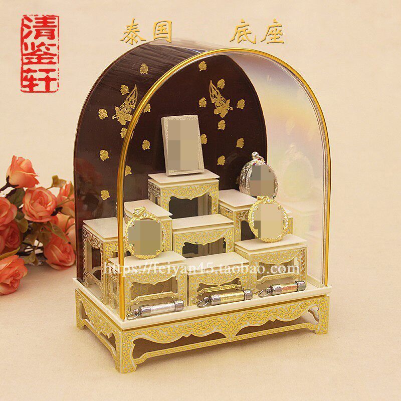 Thailand Buddha card placed with many treasures for bench multi-layer with cover four sides Chongdi white gold nine palace throne dustproof
