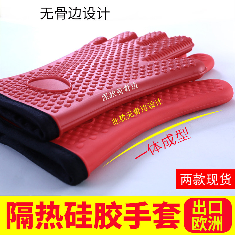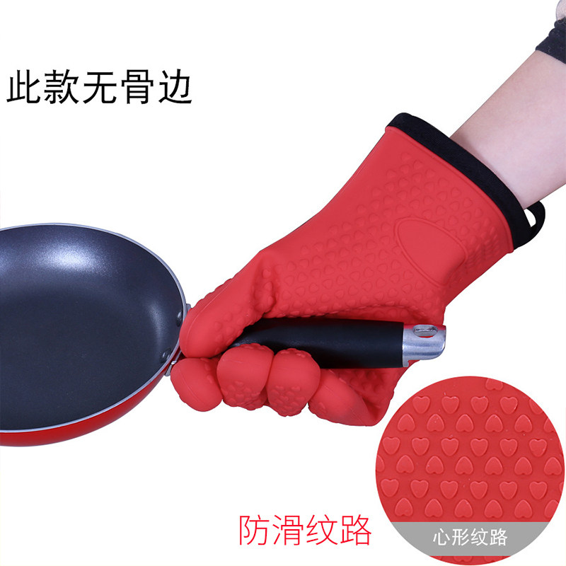 Kitchen Baking Five Fingers Gloves Grey Rib Microwave Oven Insulation Plus Cotton Thickened Double Silicone Anti-Burn Gloves