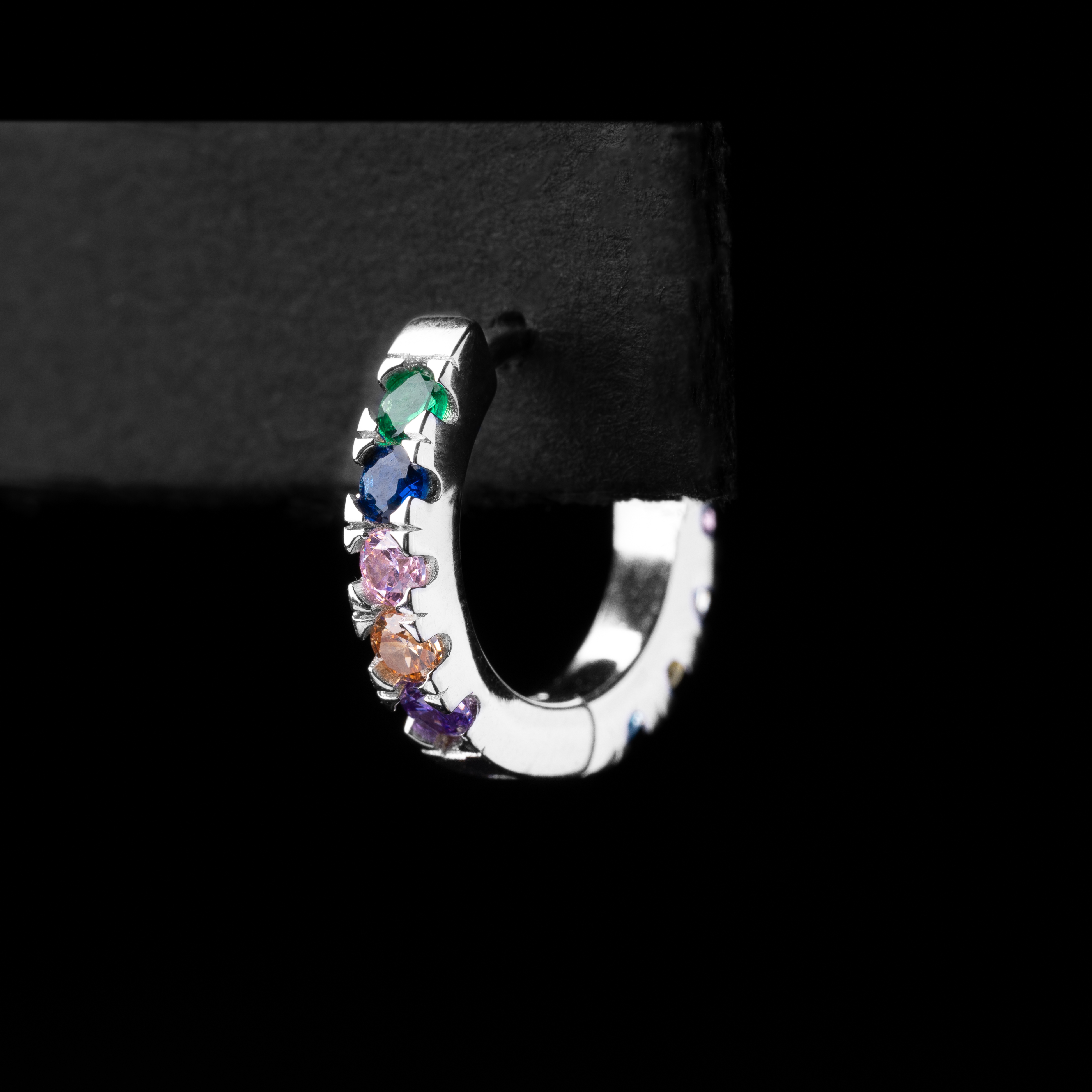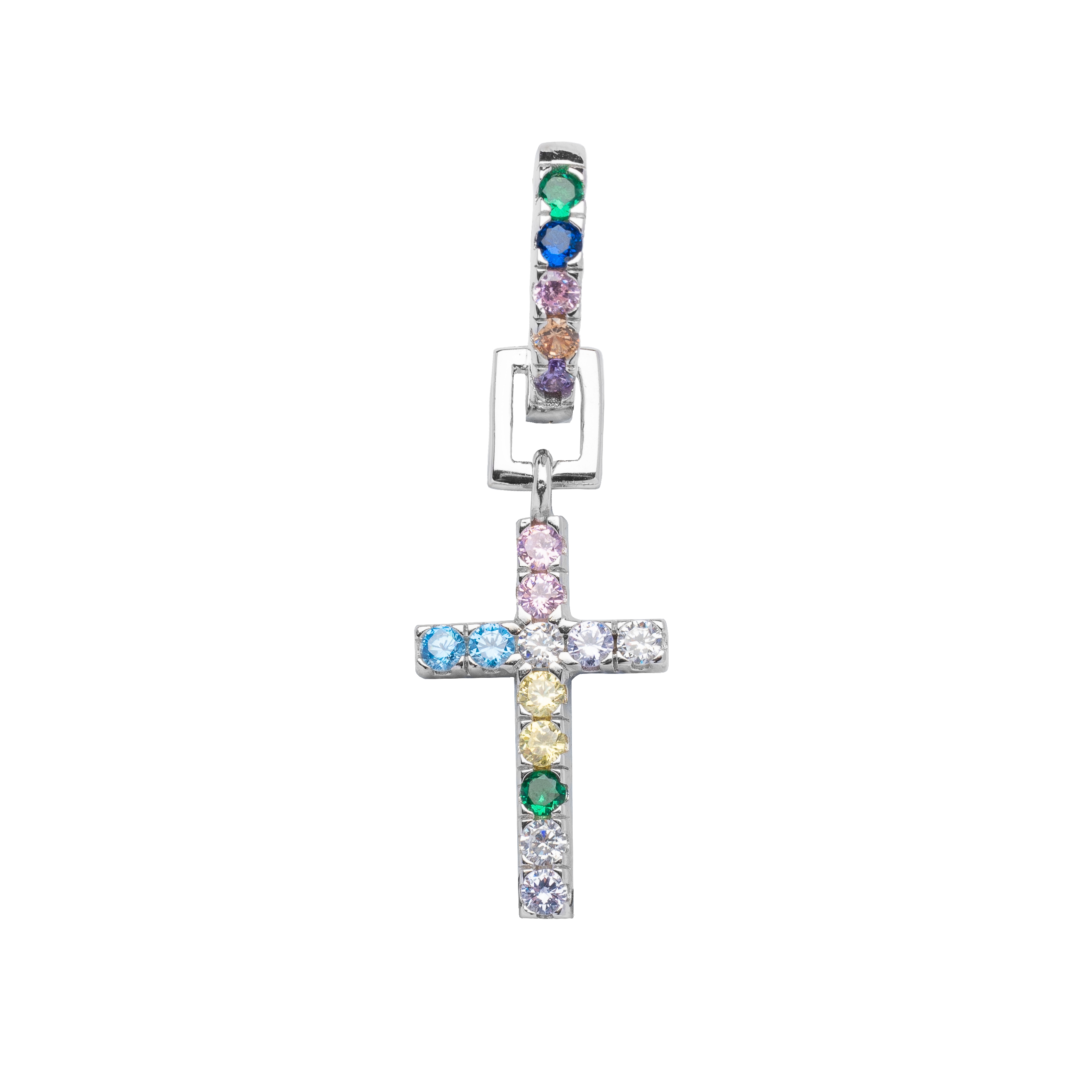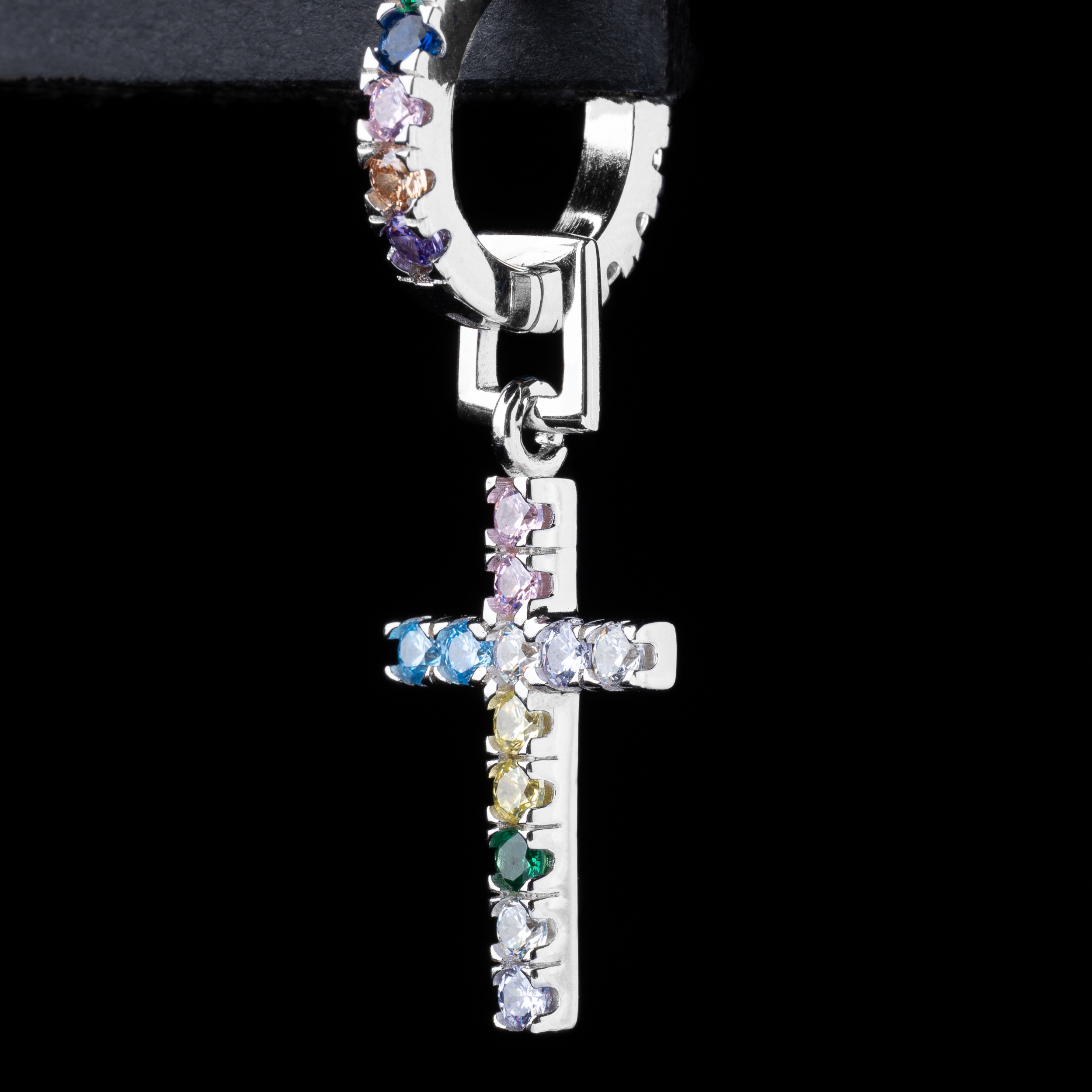 ICEGANG Cross Earrings S925 European And European Color Zircons Ear Nail Suit Combined Pure Silver Needle Hip Hop Superflash