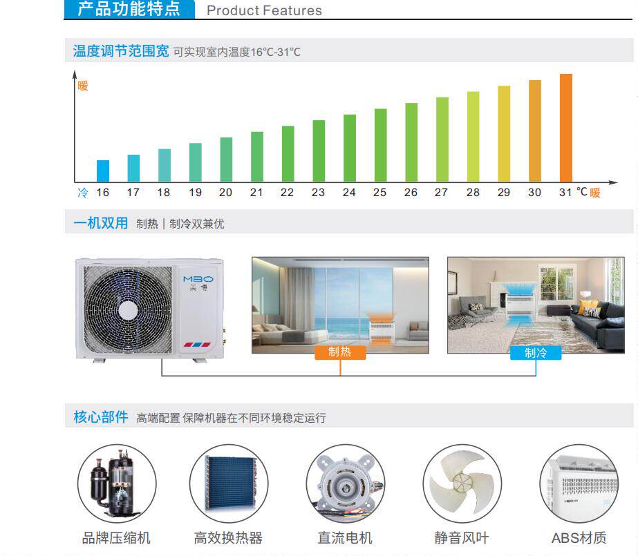 MBO Meibo air source heat pump hot air blower 1 5p2p4 hp variable frequency cooling and heating low temperature air conditioning coal to heating fan machine
