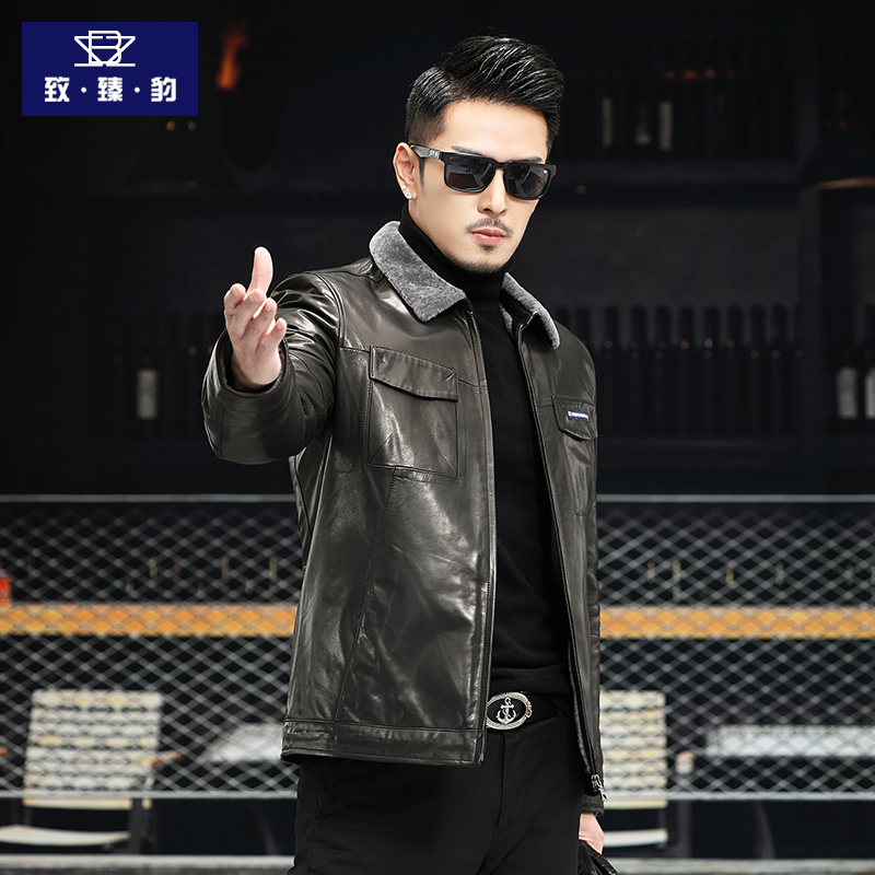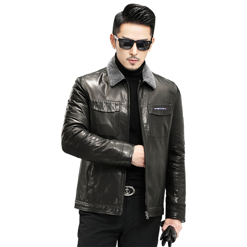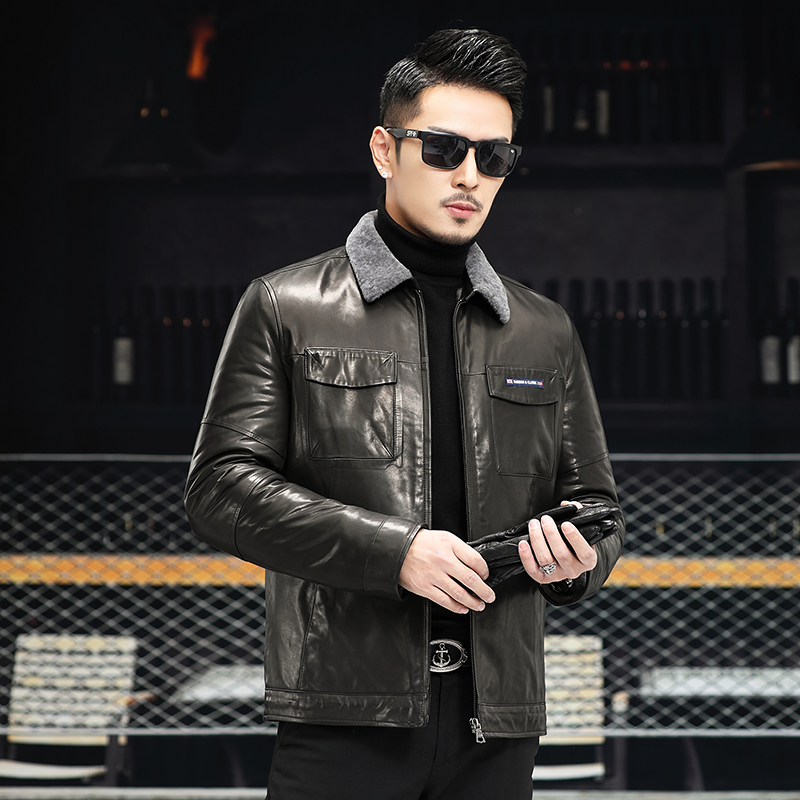 Haining leather leather jacket men men's fur one lamb hair lapel short goat leather jacket winter fur jacket