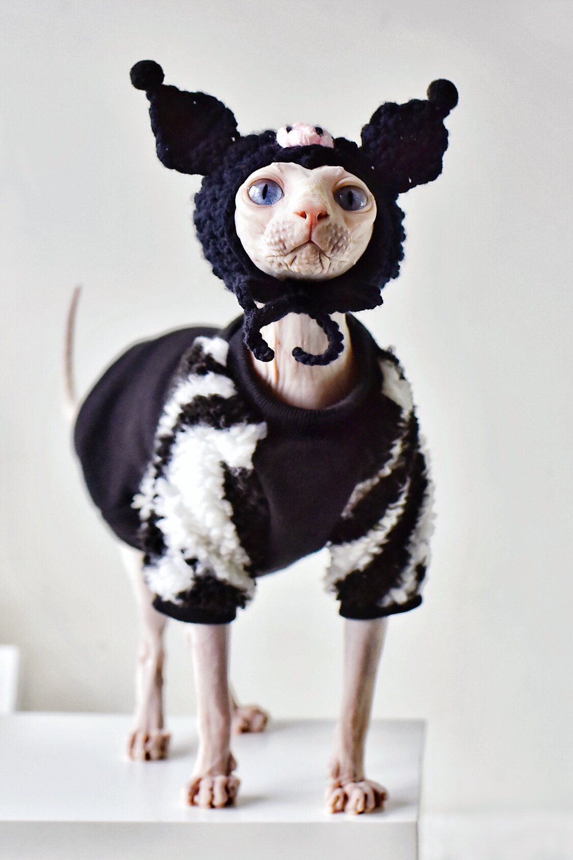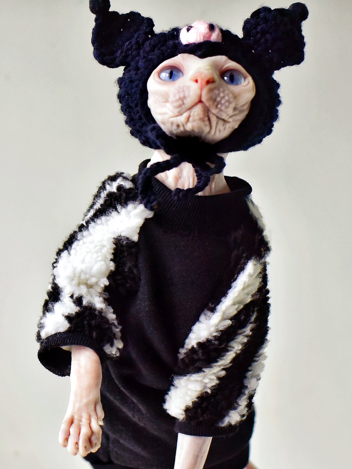 YH - (little devil) to blame pure cotton handwoven winter warm hat Sfinks no hairy cat clothes