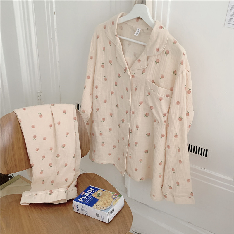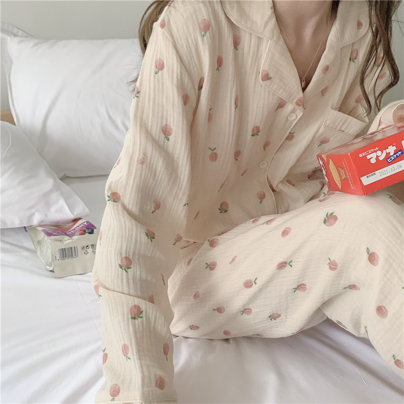 Earthly Water Honey Peach ~ CHAO Sweet Pyjamas Woman Spring Autumn Day Ensemble Pure Cotton Cute Korean version can be worn outside home ju clothes