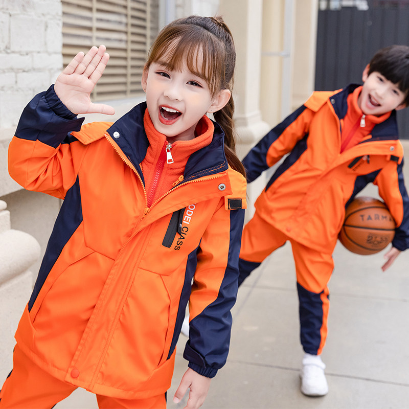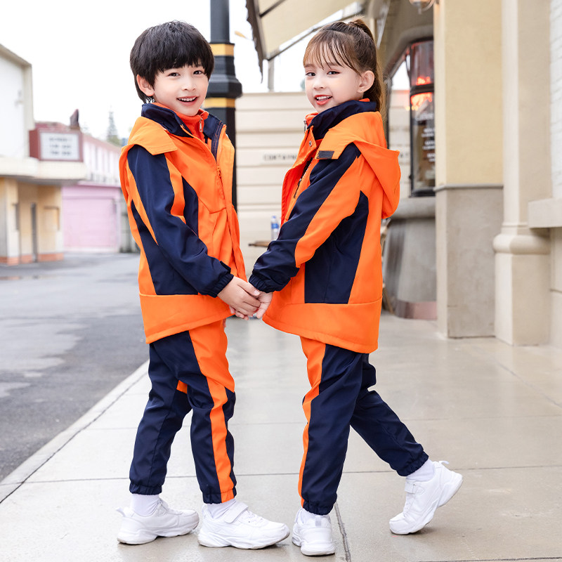 Primary school children's school uniform with submachine clothing Three sets of kindergarten garden clothes Spring autumn and winter clothing Children's class clothes Chauer Thickened Three-in-one