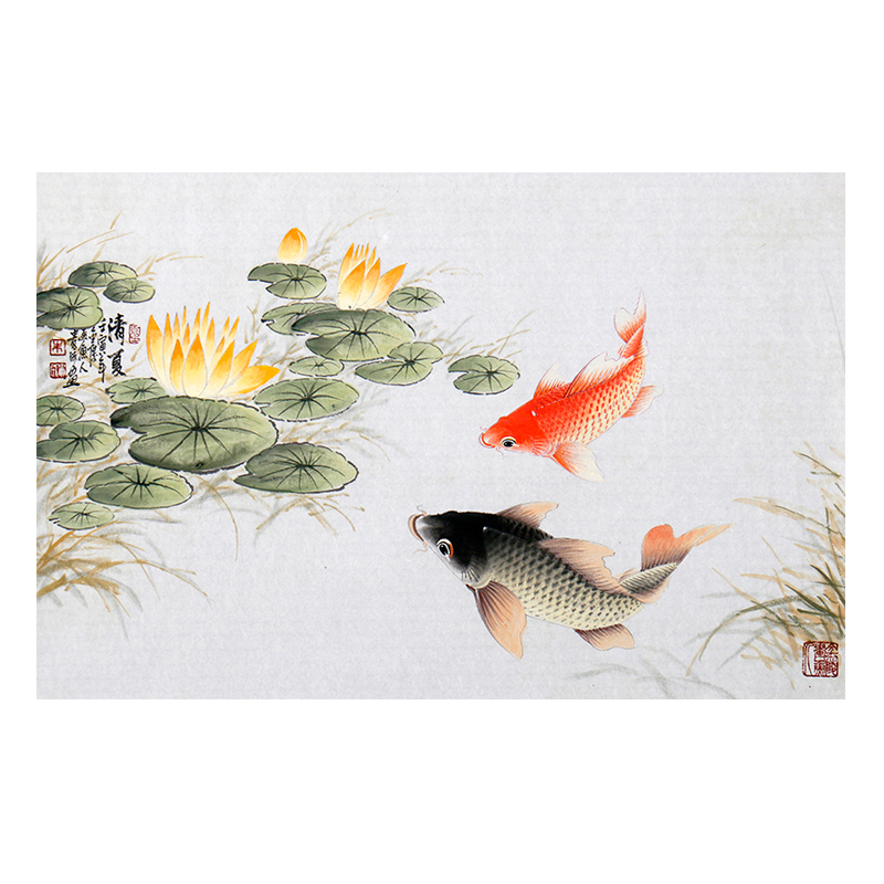 Zhu Guicheng, vice president of flower bird research association of Jiangsu Province, painted fine Qingxia picture of Chinese carp master
