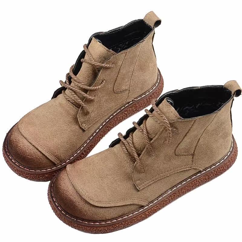 Autumn new retro short boots women's all-match Japanese thick-soled bag shoes high-top big-toe doll shoes round-toe lace-up nude boots