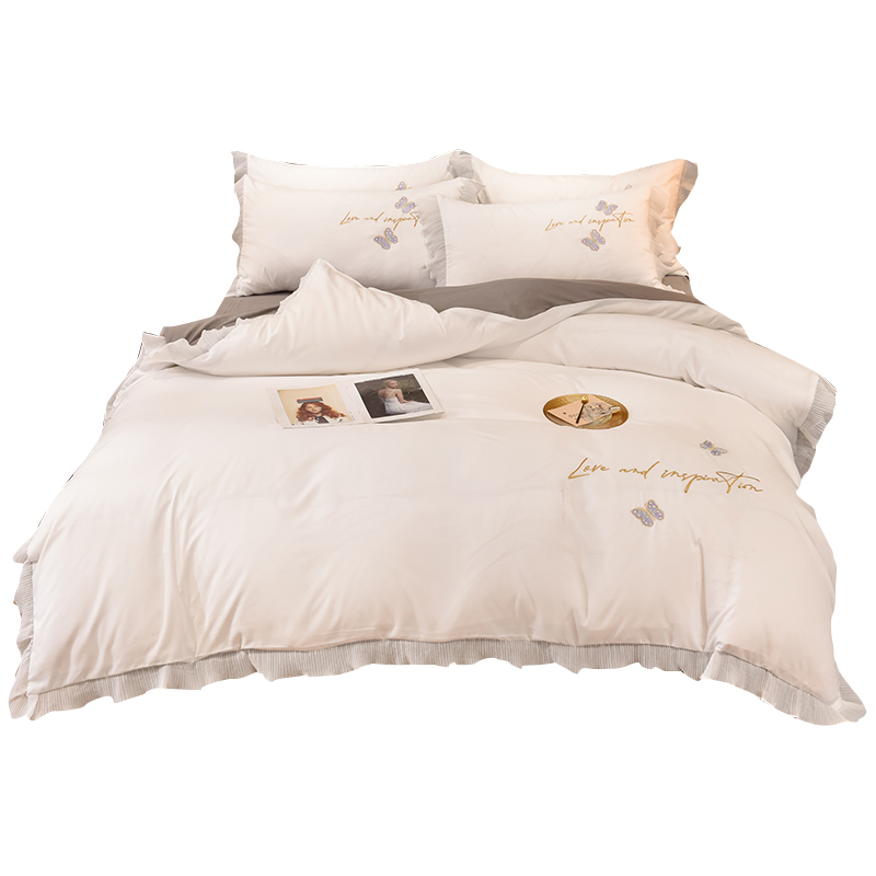 No ball embroidered full cotton four sets pure cotton nude sleep quilt cover girl heart bed Skirt Bed Cover Non-slip Sheet Princess Wind