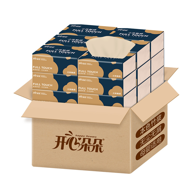 (24 packs 360 sheets 4 floors) Bamboo Pulp Color 4D Cubic embossed Large Number Extraction Tissue Paper Napkin SANITARY EXTRACTABLE TOILET PAPER