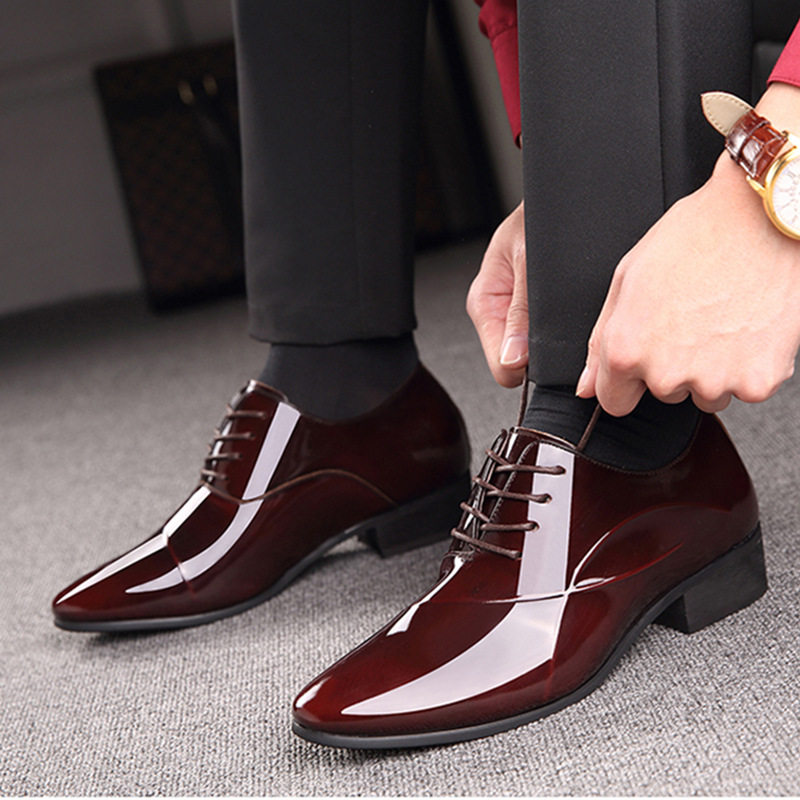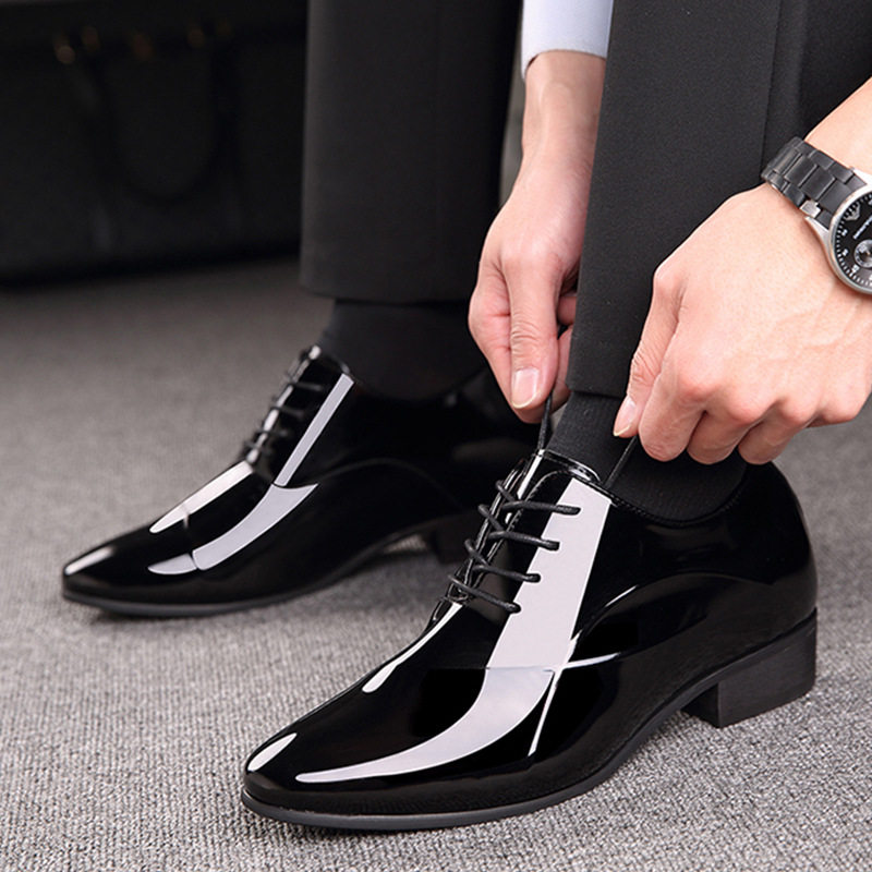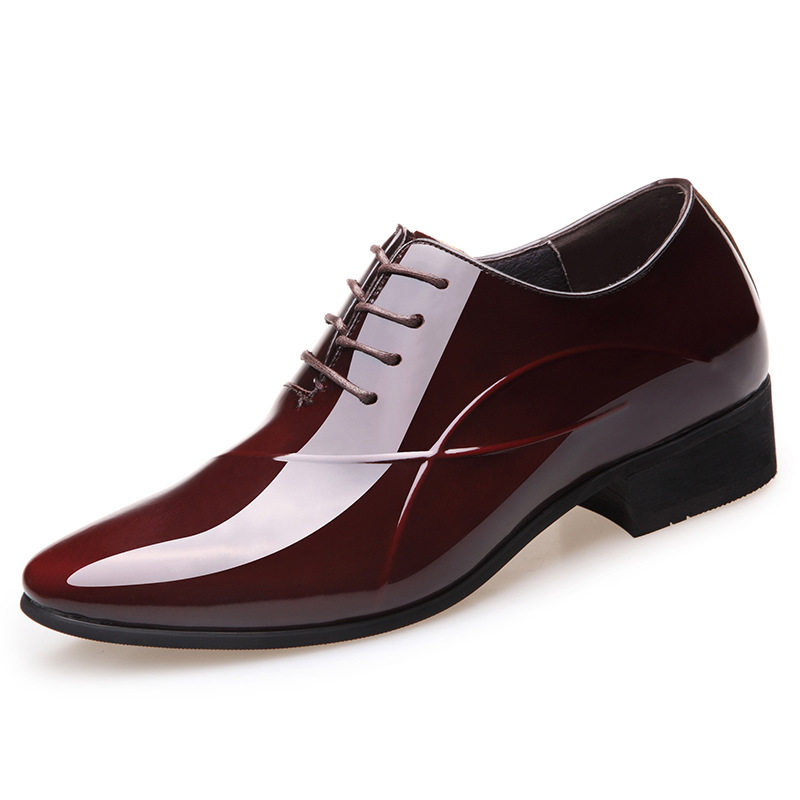 High-end quality men's shoes new middle-aged men's inner heightening 8cm pointed genuine leather bright leather positive clothing man-Taobao