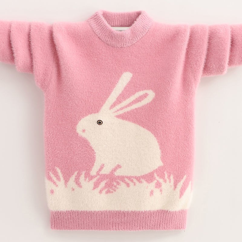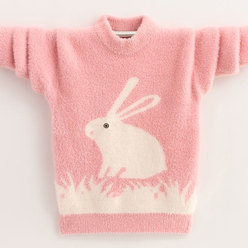 Girl Water Mink Suede Little White Rabbit Sweater 2021 New Autumn And Winter Style Thickened Warm Ocean Sends CUHK Child Women's Undershirt