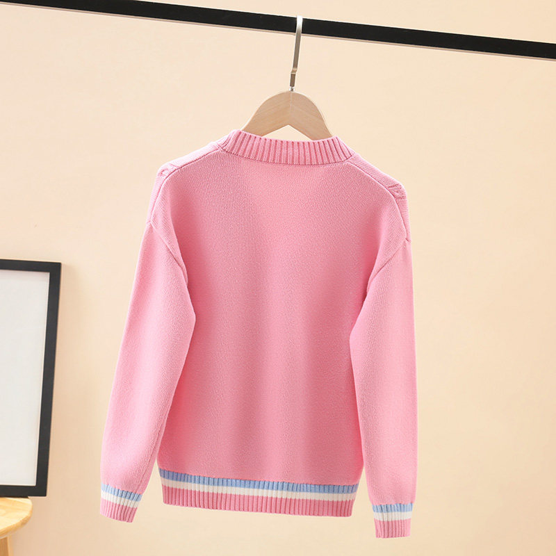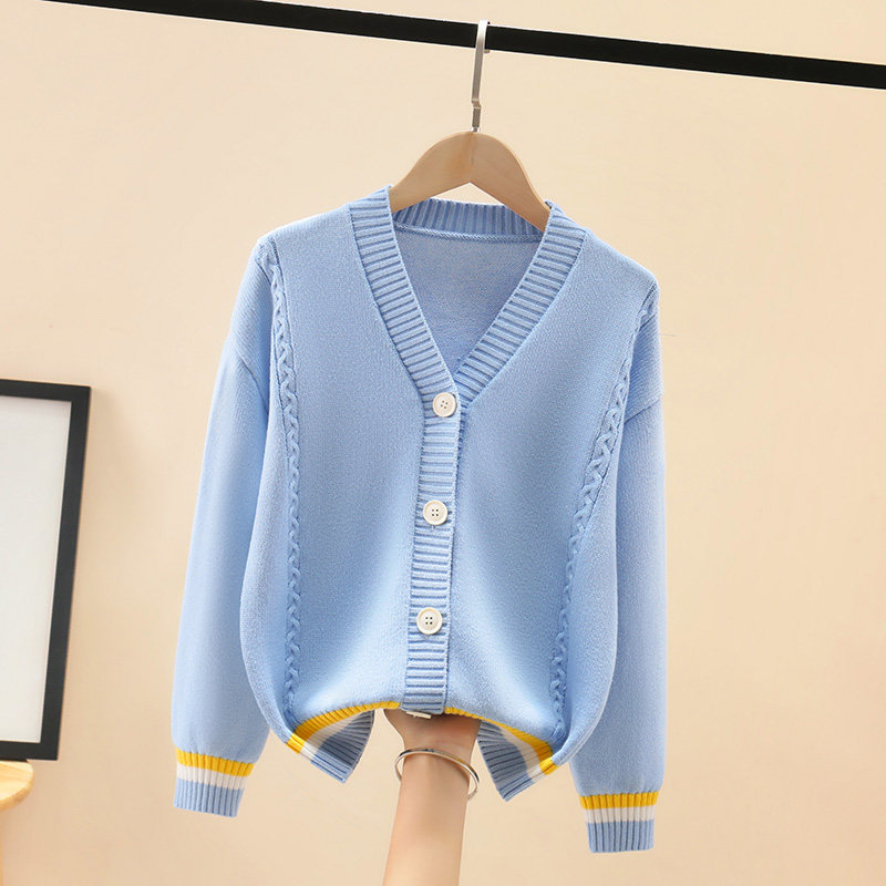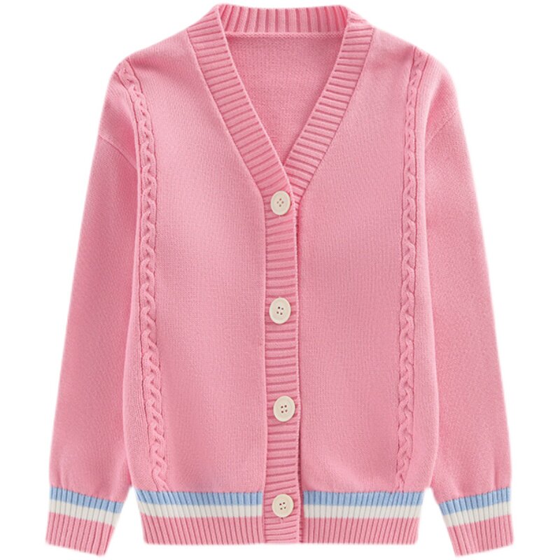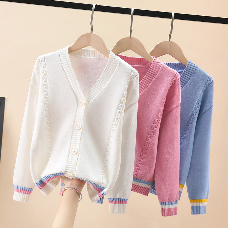 Girls Knitted Cardigan Cotton Sweater 2021 New Spring and Autumn Solid Color Top Coat Big Boys Korean Style Western Style