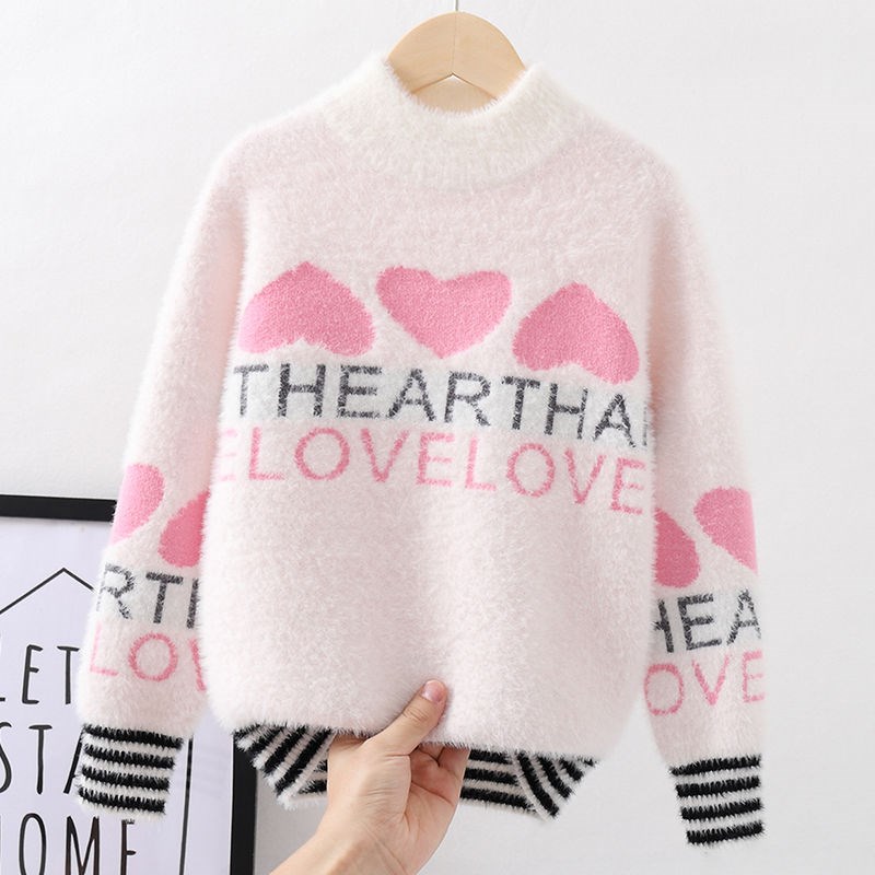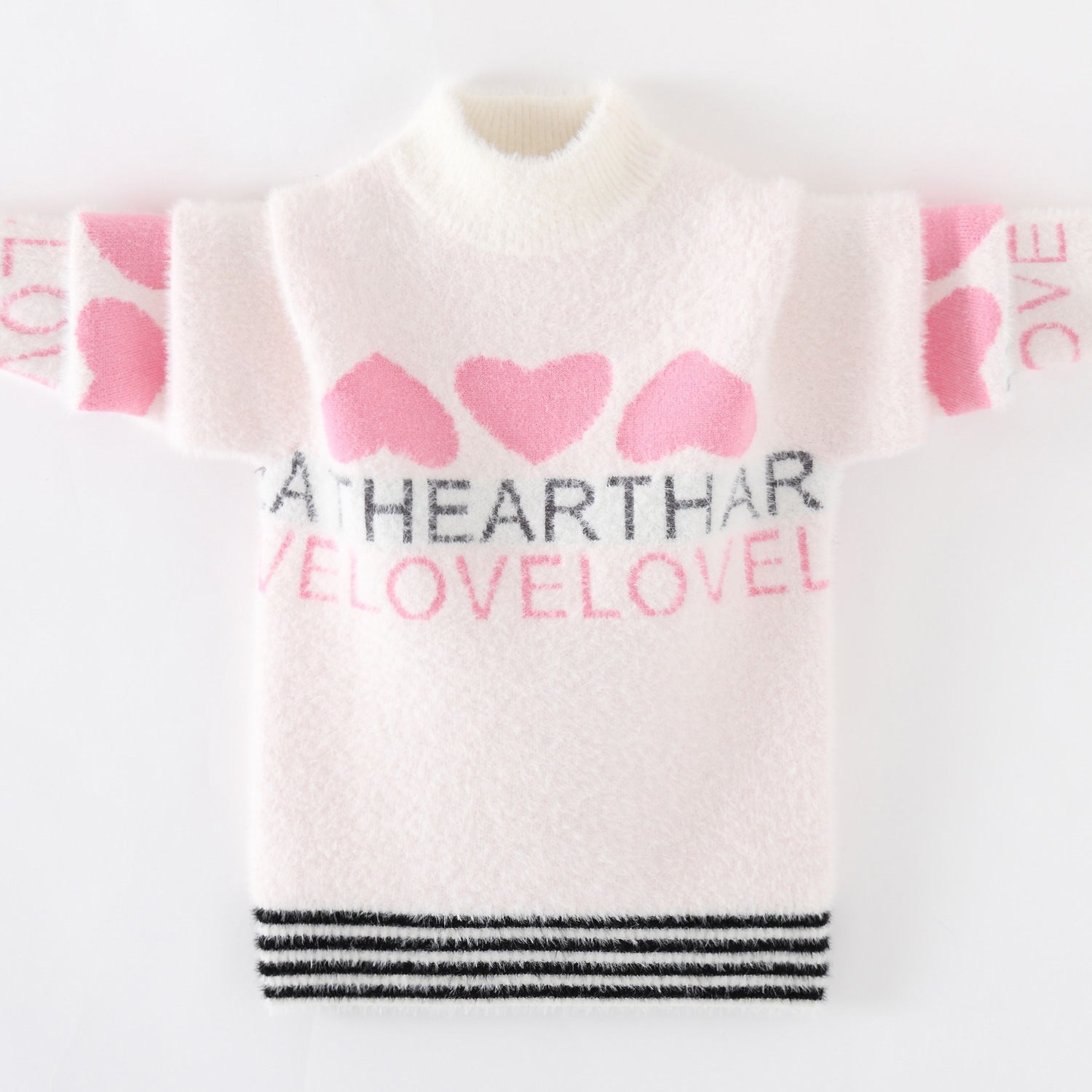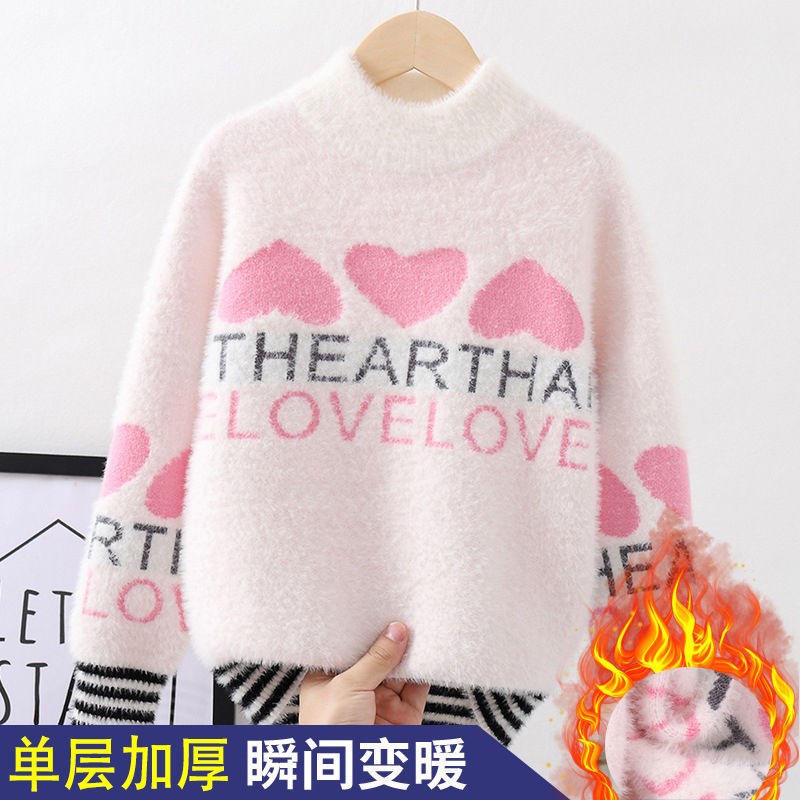 Girl sweaters Children's water mink suede Garnter thickened Autumn winter clothing Knitted Cardiovert Baby baby jacket Head of the undershirt