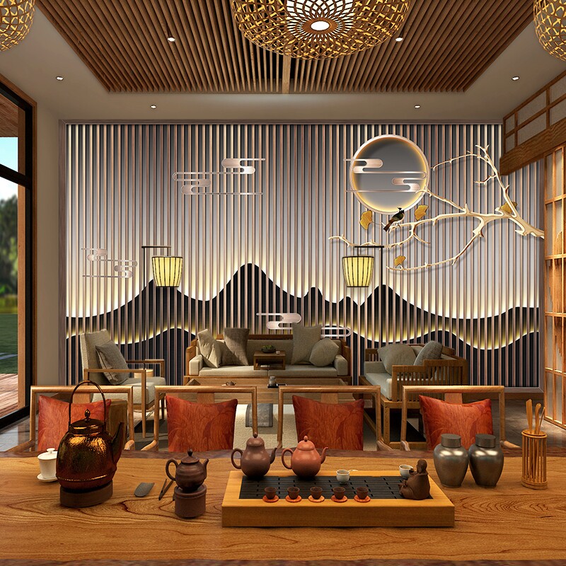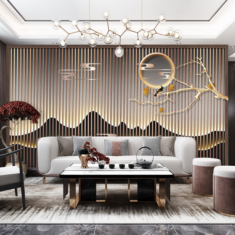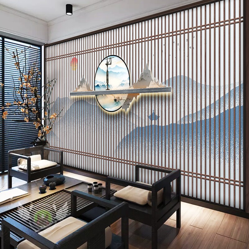 Environmental protection bamboo and wood fiber integrated board new Chinese TV background wall fast-loading study living room sofa film and television wall panel