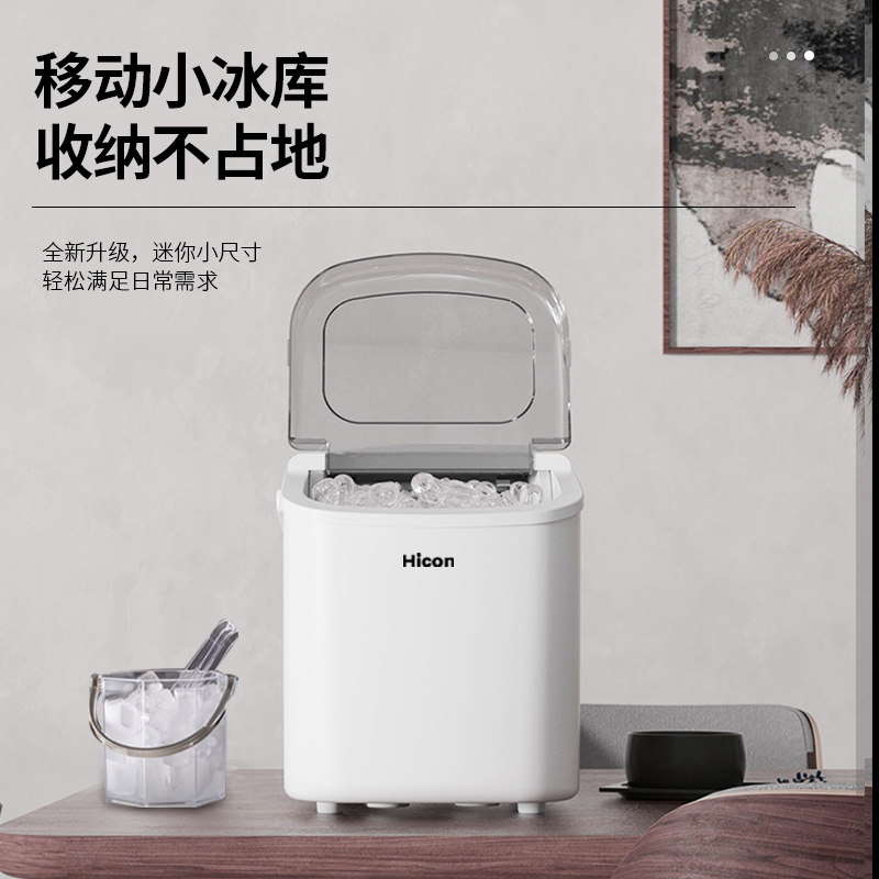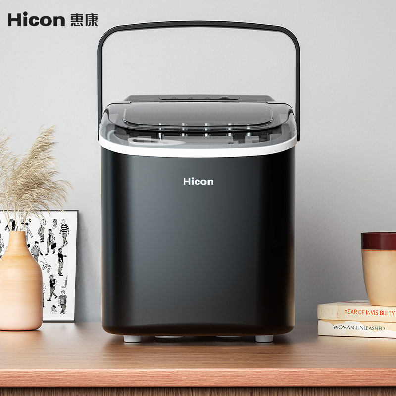 Hicon Hui Kang Small Household Ice Maker 15KG Retro Black Red Mini Dorm Room Round Ice Block Making Machine