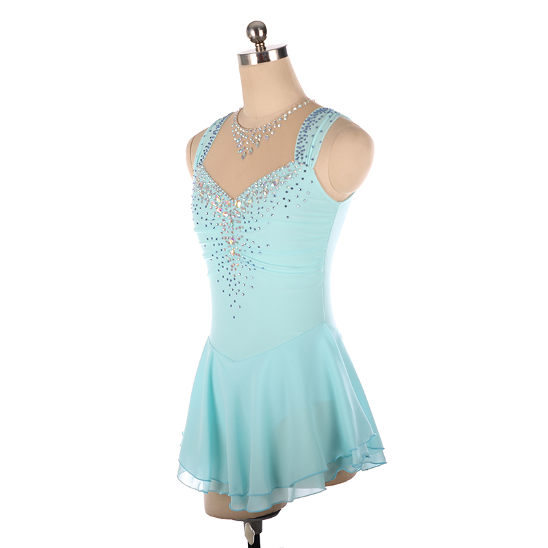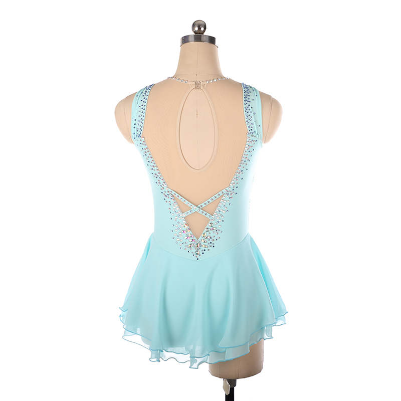 Forno figure skating suit performance Contest scooters Ice Suit Children Adult Competition Clothing Sleeveless Light Blue Big Drill