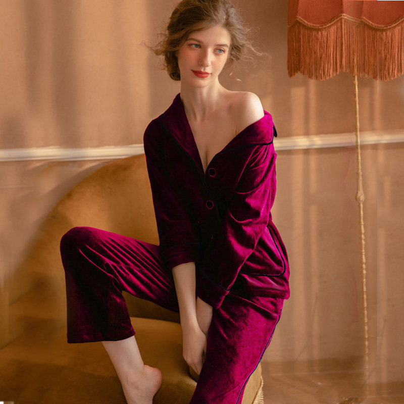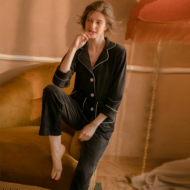 Sleepwear Woman Winter New Island Suede Flannel Velvet Long Sleeve Net Red Bursting 2022 Sleeping Women's Spring and Autumn Family Clothes-Taobao