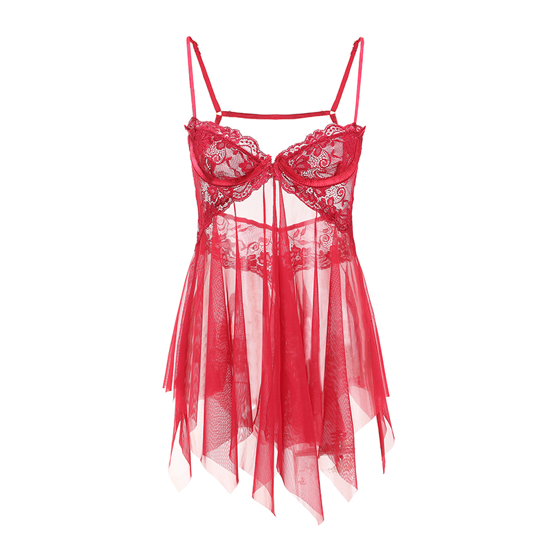 The New Year's Eve Sexy Sleeping Girl Lace Harness Sleeping Dress front button to gather the chest transparent Fire Hot Temptation Lingerie Summer-Taobao